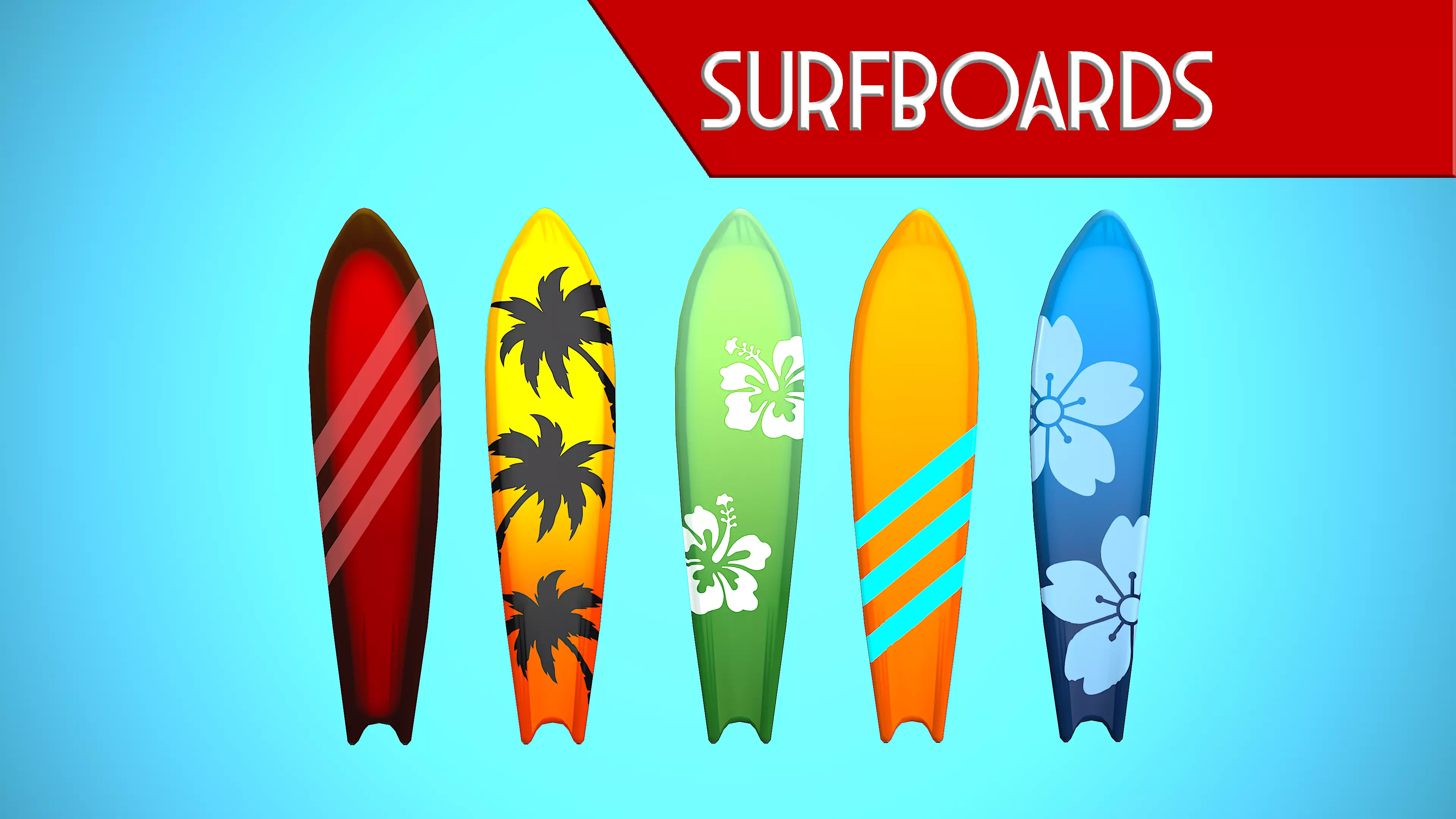 Low poly textured model of SURF BOARD 01-05 CARTOON STYLIZED. Well-textured and ready for Virtual Reality (VR), Augmented Reality (AR), games and other real-time apps for handheld devices.