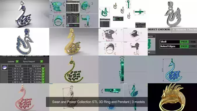 Swan and Power Collection STL 3D Ring and Pendant 3D Model Pack