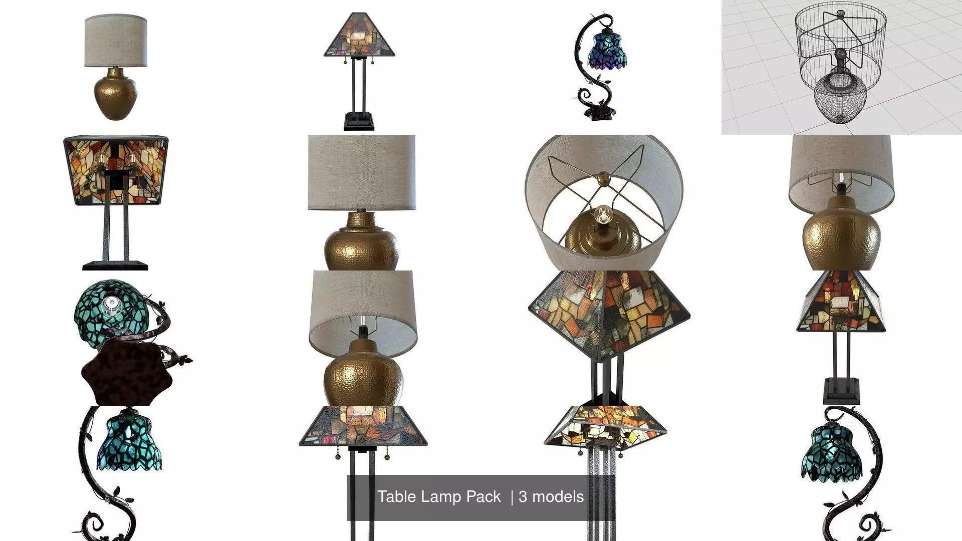 This pack of table lamps features 3 unique designs which can fit into your interior project for renderings, animation, VR, AR and game design.