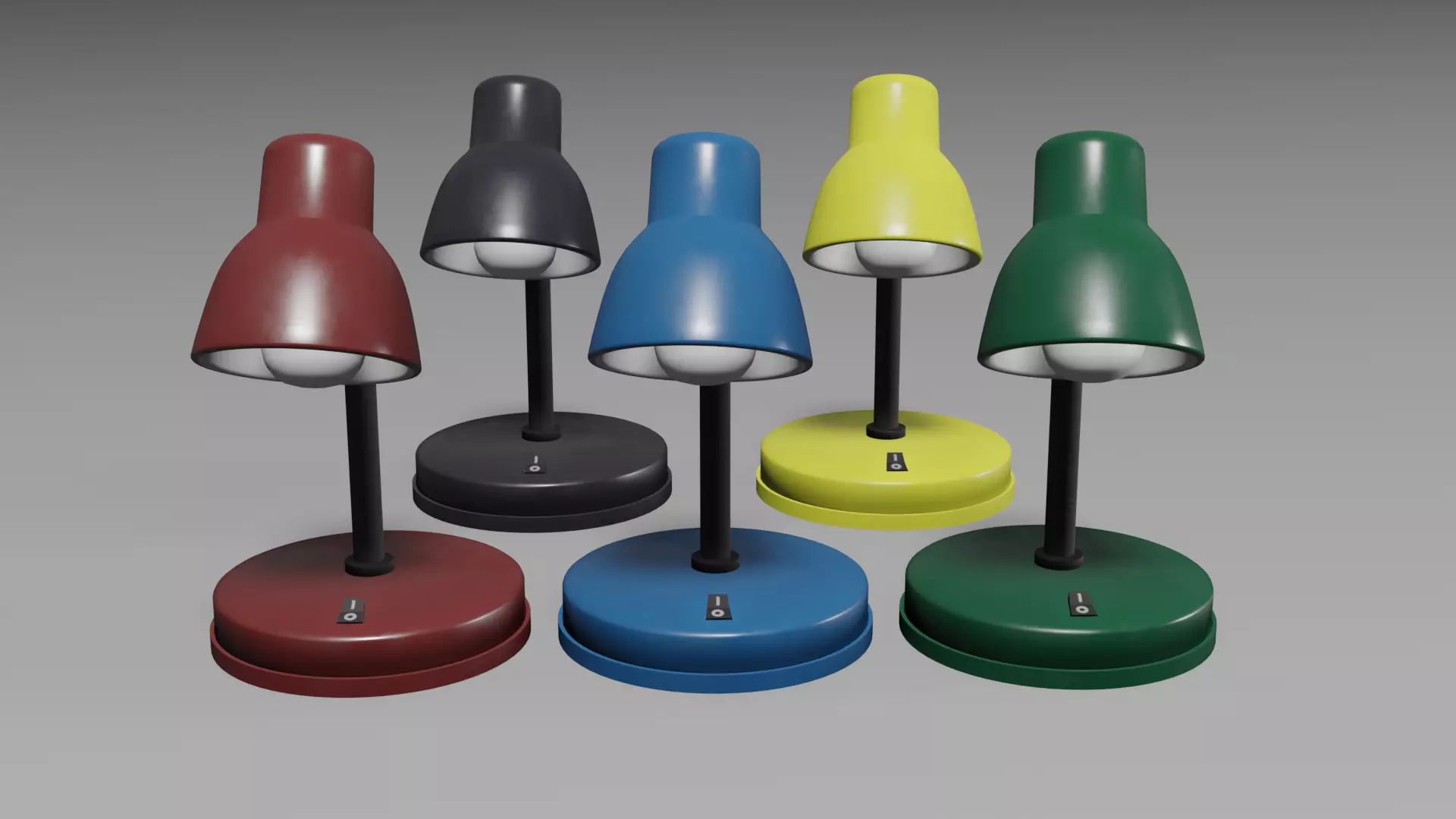 A set of gameready 3d models modern table lamp in five colors: black, red, green, blue, yellow! This models is perfect for visualizing interiors. It can be used both in the development of interior design, as well as in any game projects. This models will be an excellent decoration of the bedroom!