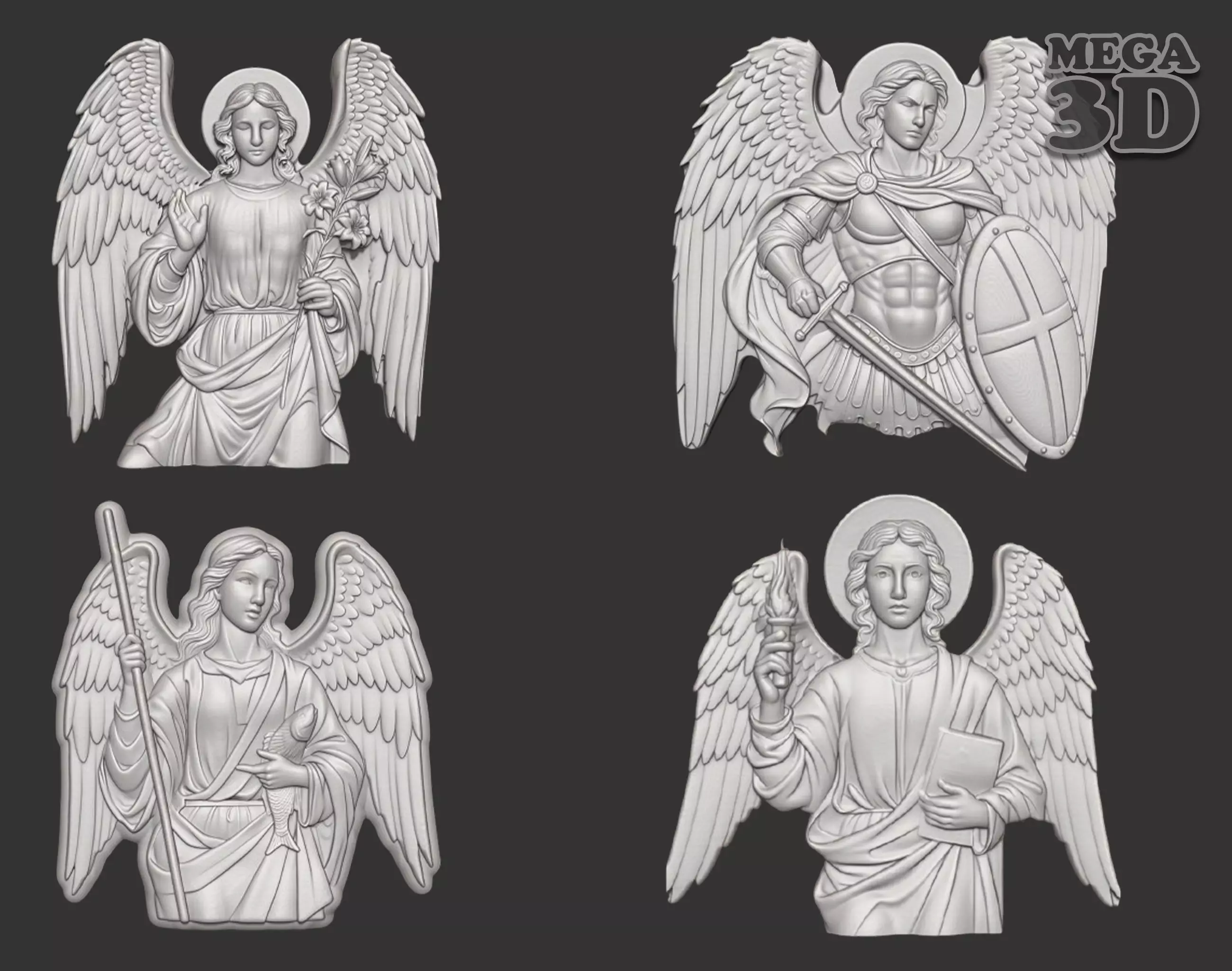archangels, saint, religious, christian, pendant, medal, necklace, cnc, printing, relief, decor, jewelry, artcam, art, engraving, carved, basrelief, woodworking
