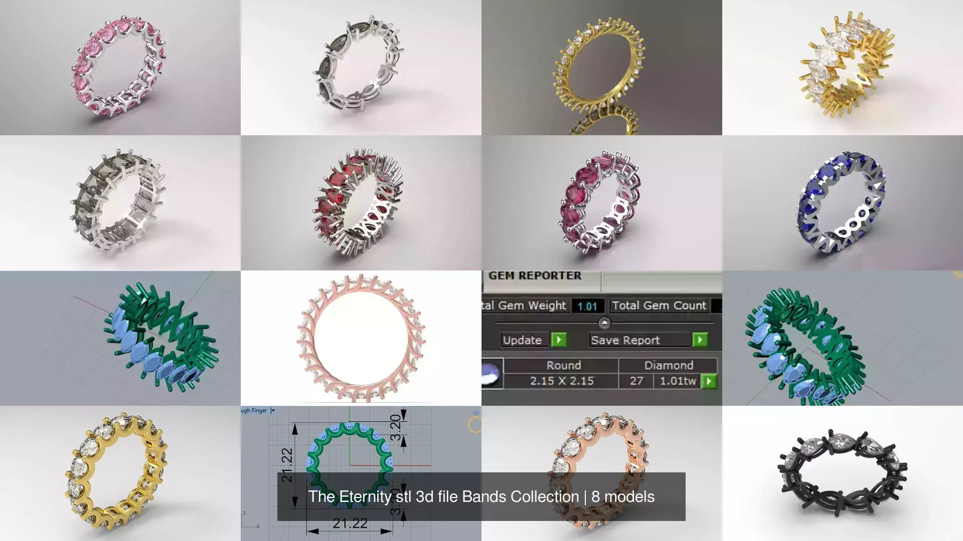 You have selected a unique and comprehensive collection of the most popular Eternity Bands with various diamond cuts for sale as a ready-to-make file (3D design). This collection covers all styles, from the most classic (round) to the most fantasy (marquise).