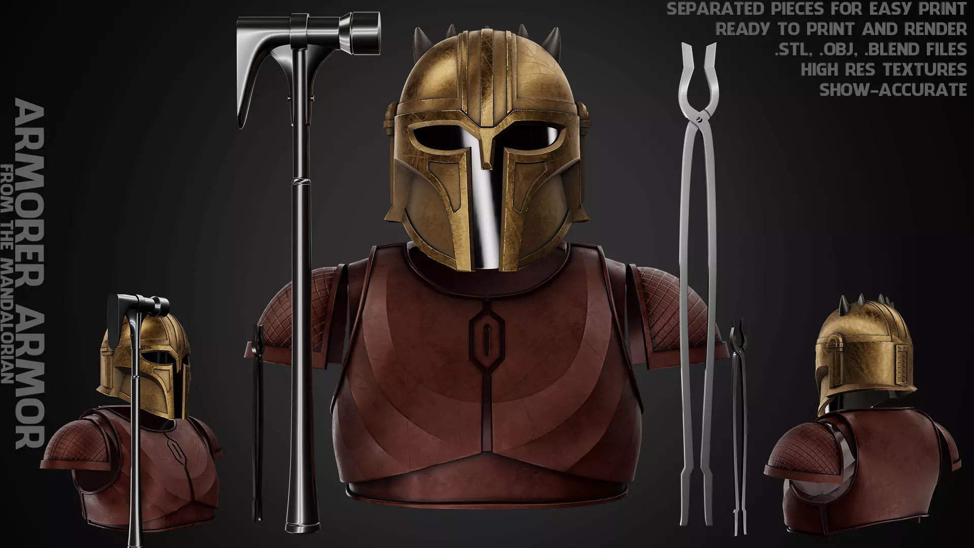 Armorer Full Armor and Tools from The Mandalorian Tv show ready to print (show-accurate) real-size