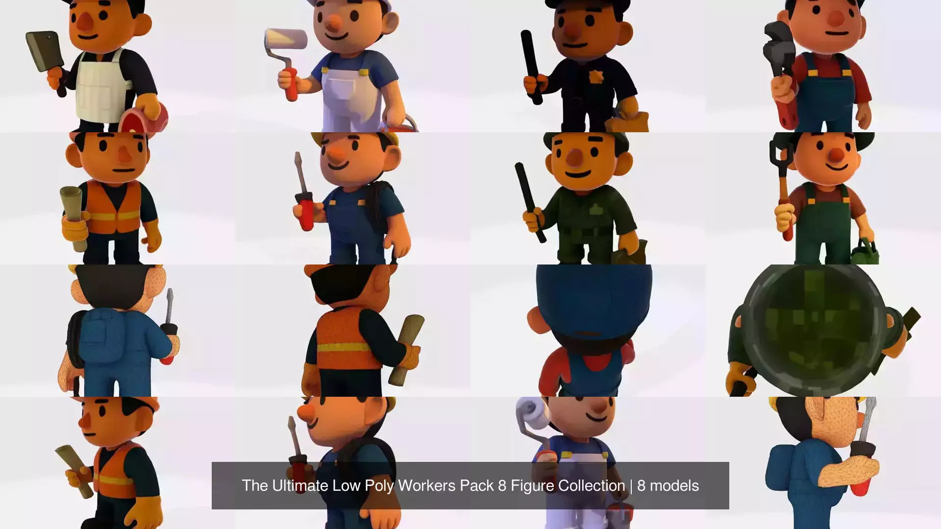 Build Your World The Complete 8 Character Professional 3D Model SetSecure the Ultimate Low-Poly Workers Pack, a massive 8-in-1 collection of charming, professionally designed characters. This pack is your single source for populating scenes, creating unique gifts, or building a valuable collectible line. Every model is expertly crafted with robust low-poly topology, ensuring they are Game-Ready and perfectly Print-Ready.
