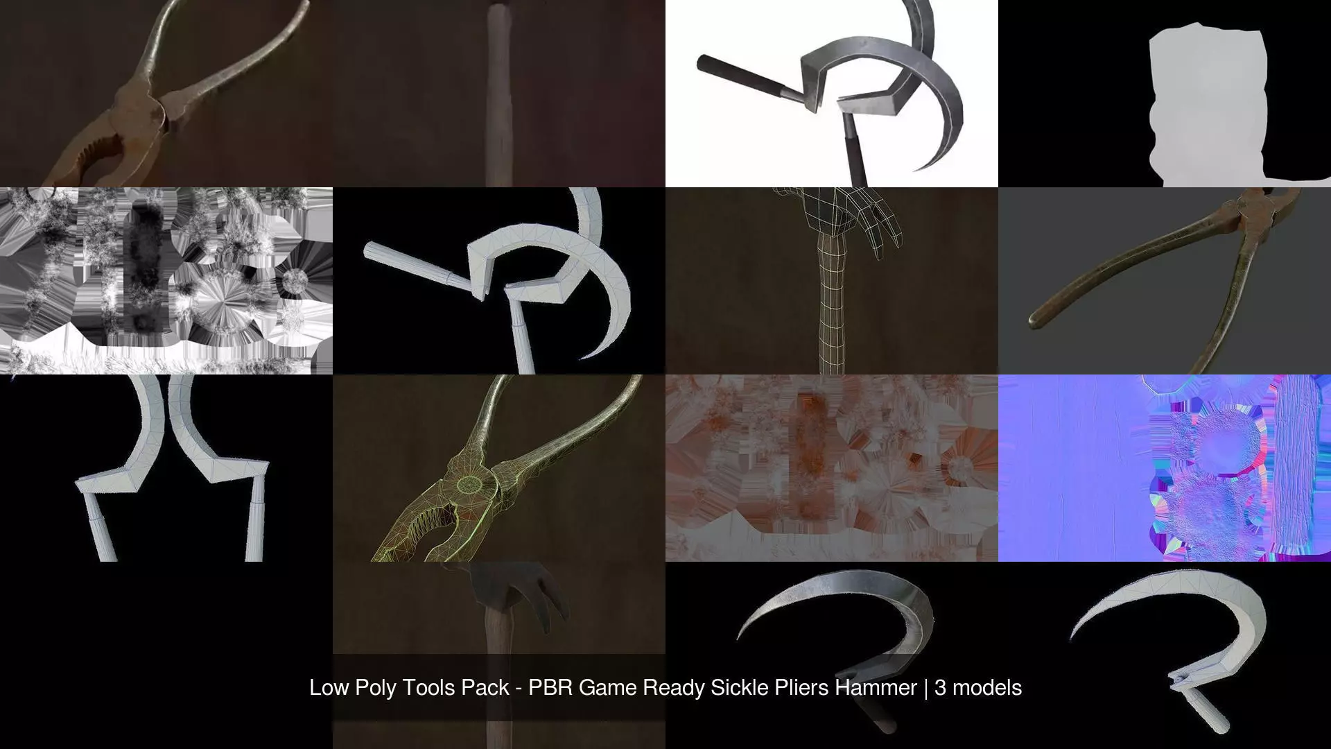 This Low Poly Tools Pack contains three classic hand tools designed for games, real-time rendering, and interactive projects. Each asset is optimized for performance while maintaining clean shapes and detailed PBR textures.