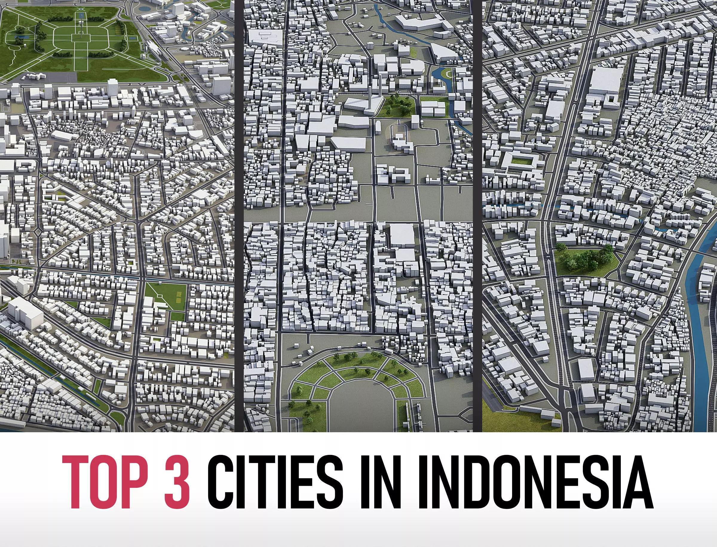 This is exact and accurate to scale 3D city model of cities in Indonesia and its surrounding area based on GIS data (September 2019)