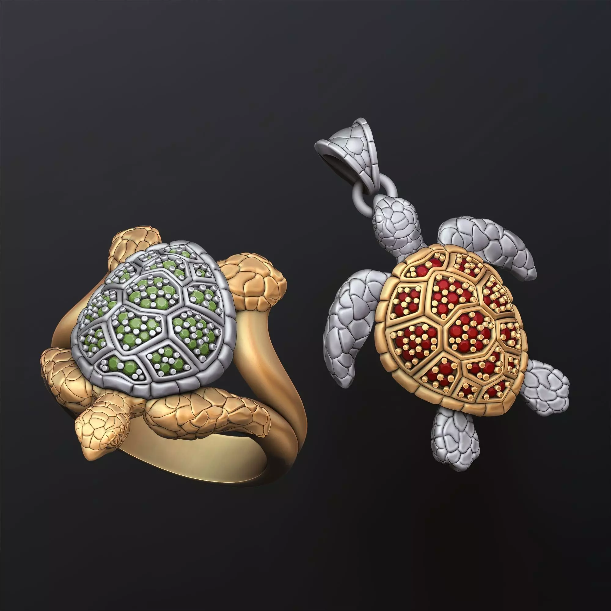502.Turtle pendant with gems 3D Print Model
