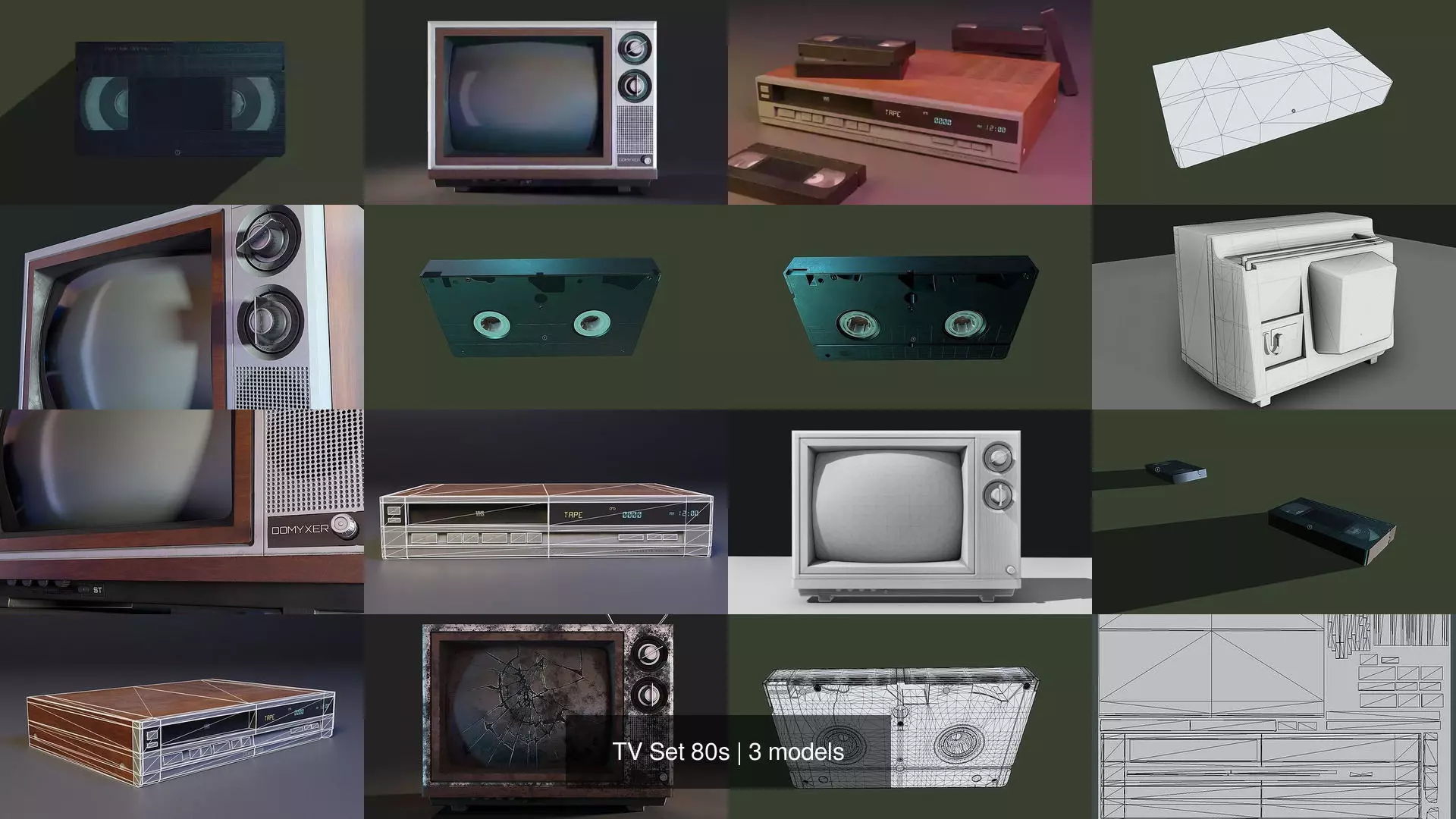 This asset suitable for video games, completely in low poly includes a tv, vhs player, vhs with the hightpoly version included.