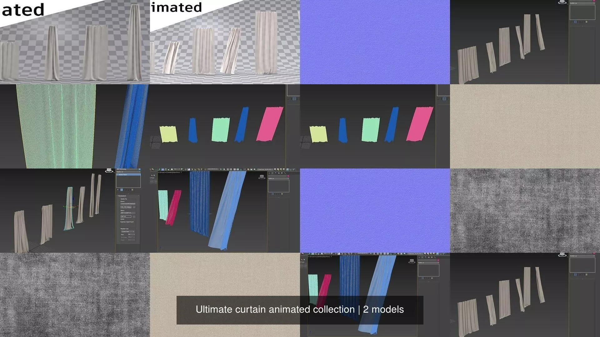 12 HighRez curtains animation cached in alembic.