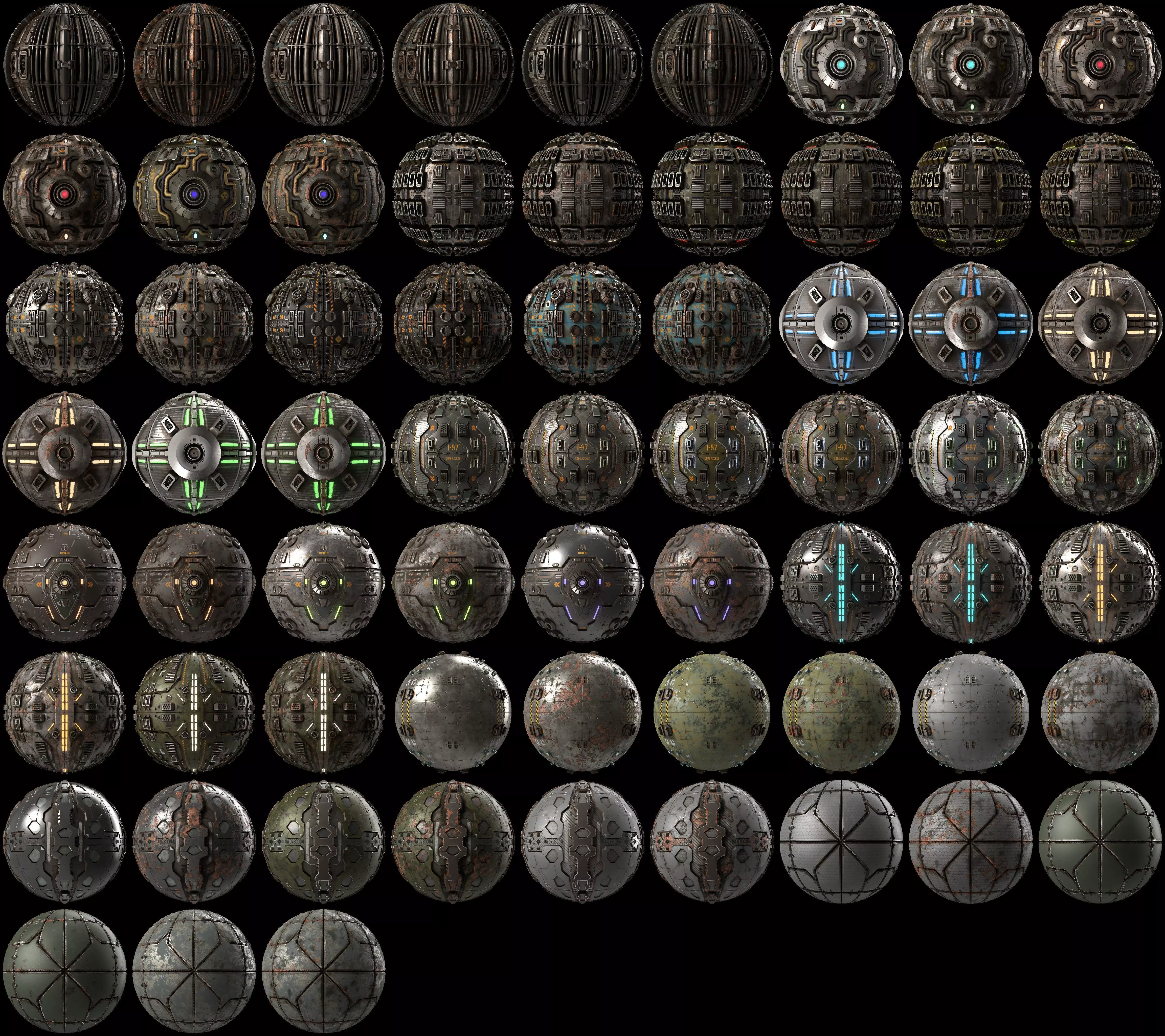 Seamless PBR Textures Collection for Industrial Sci-Fi Settings, can be used on Corridor Floors, Hangars, Industrial Rooms etc. or combine them with other sets to give your level the desired Design.