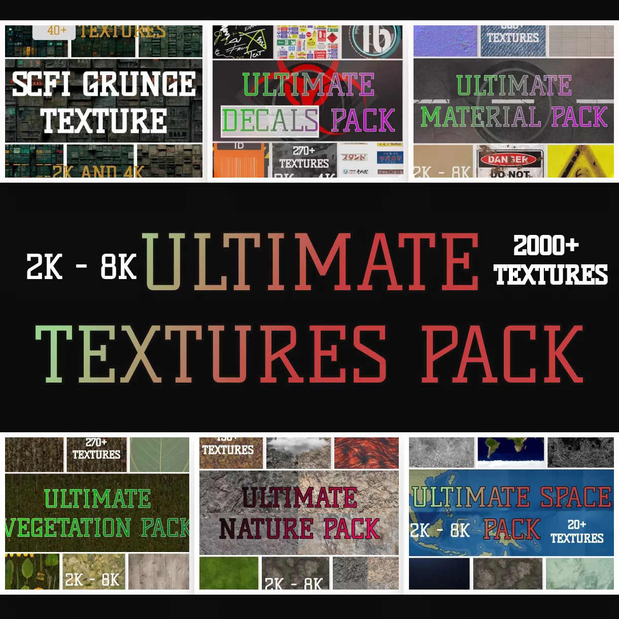 Are you searching for textures for your upcoming project? Look no further! We proudly present the Ultimate Texture Pack, featuring a vast collection of over 2000+ high-quality textures of various kinds. Whether you need textures for backgrounds, surfaces, patterns, or much more, this pack has you covered. Experience the ultimate solution for all your texture needs and elevate your project to the next level.