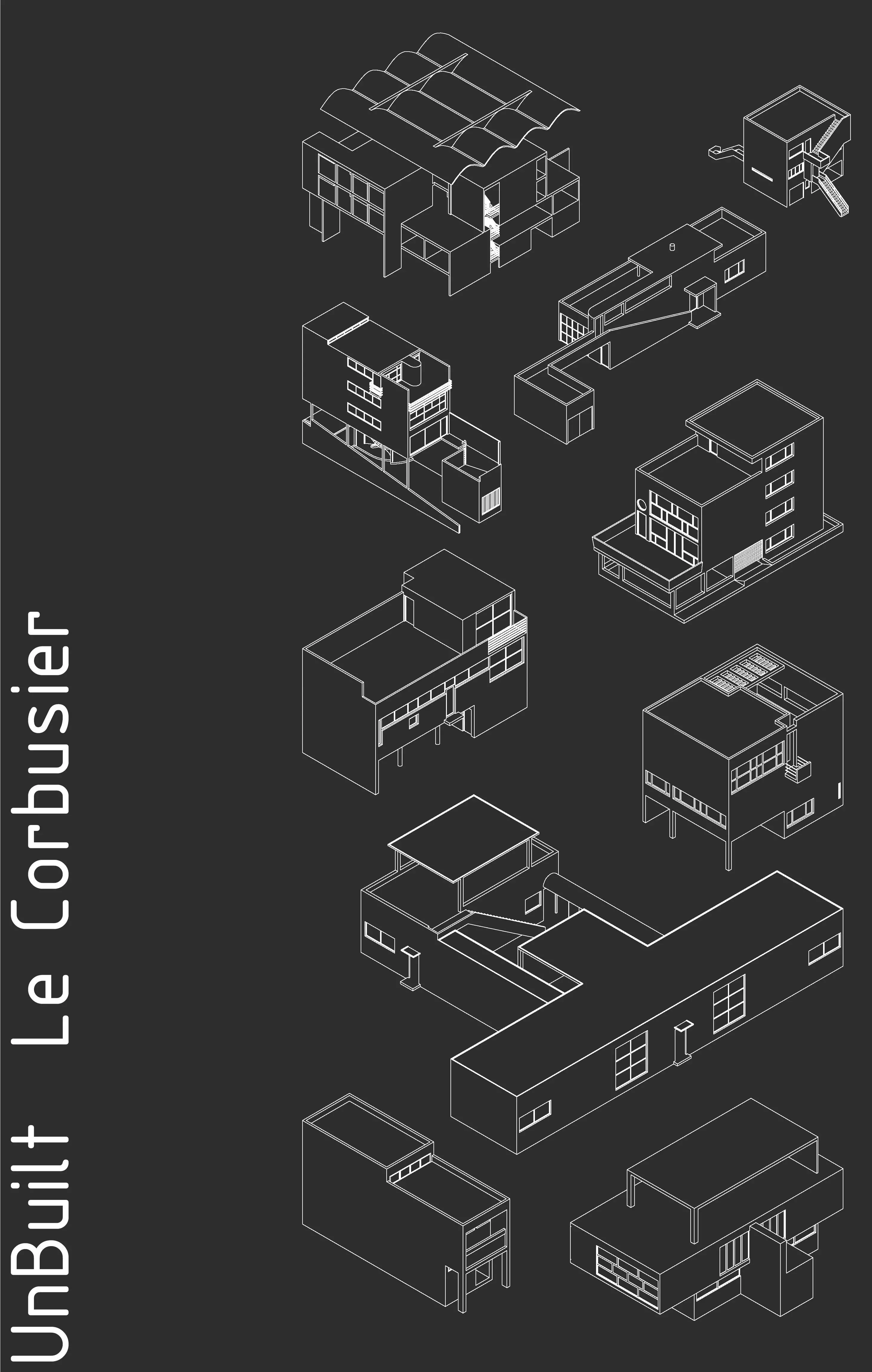 The collection includes 11 houses designed by Le Corbusier and never built. The zip folder contains floorplans, section, elevation and a 3D model of the buildings in two separate files (2D and 3D) modeled into Autocad Environment. It also includes original blueprints of the buildings as JPEG Format which are freely accessible in the website of Foundation Le Corbusier. In this collection the buildings included are: