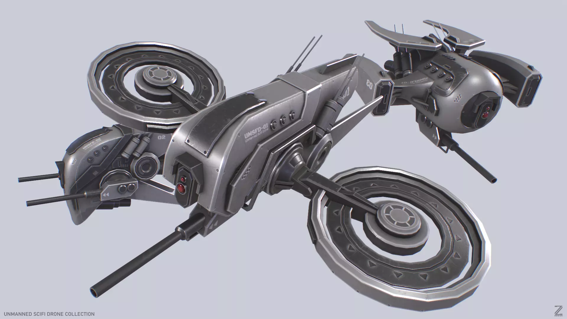 Unmanned Scifi Drone collection 3D Model Pack