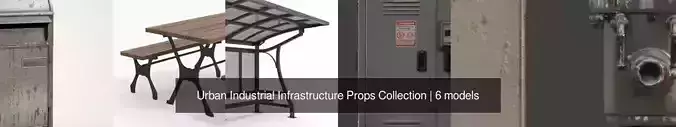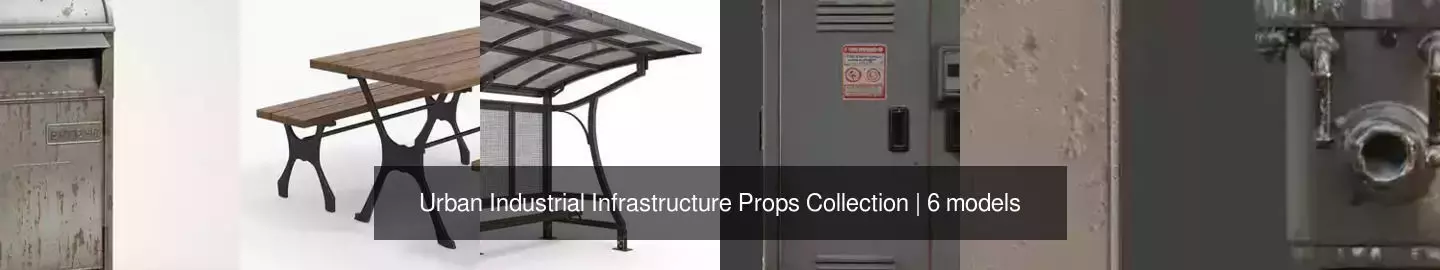 urban props, industrial props, city infrastructure, street assets, industrial equipment, post-industrial, weathered assets, urban environment, traffic signal, utility cabinet, pressure regulator, transit shelter, picnic table, mailbox, realistic props, game ready, real-time asset, PBR materials, low poly, optimized mesh, VR AR, cinematic environment, 3D asset, environment props