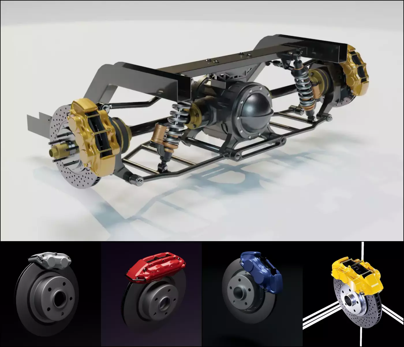 Objects: 2–3 per brake model Materials: 6–8 per brake model Polygon count: ~7,076–14,508 Vertex count: ~7,392–17,168