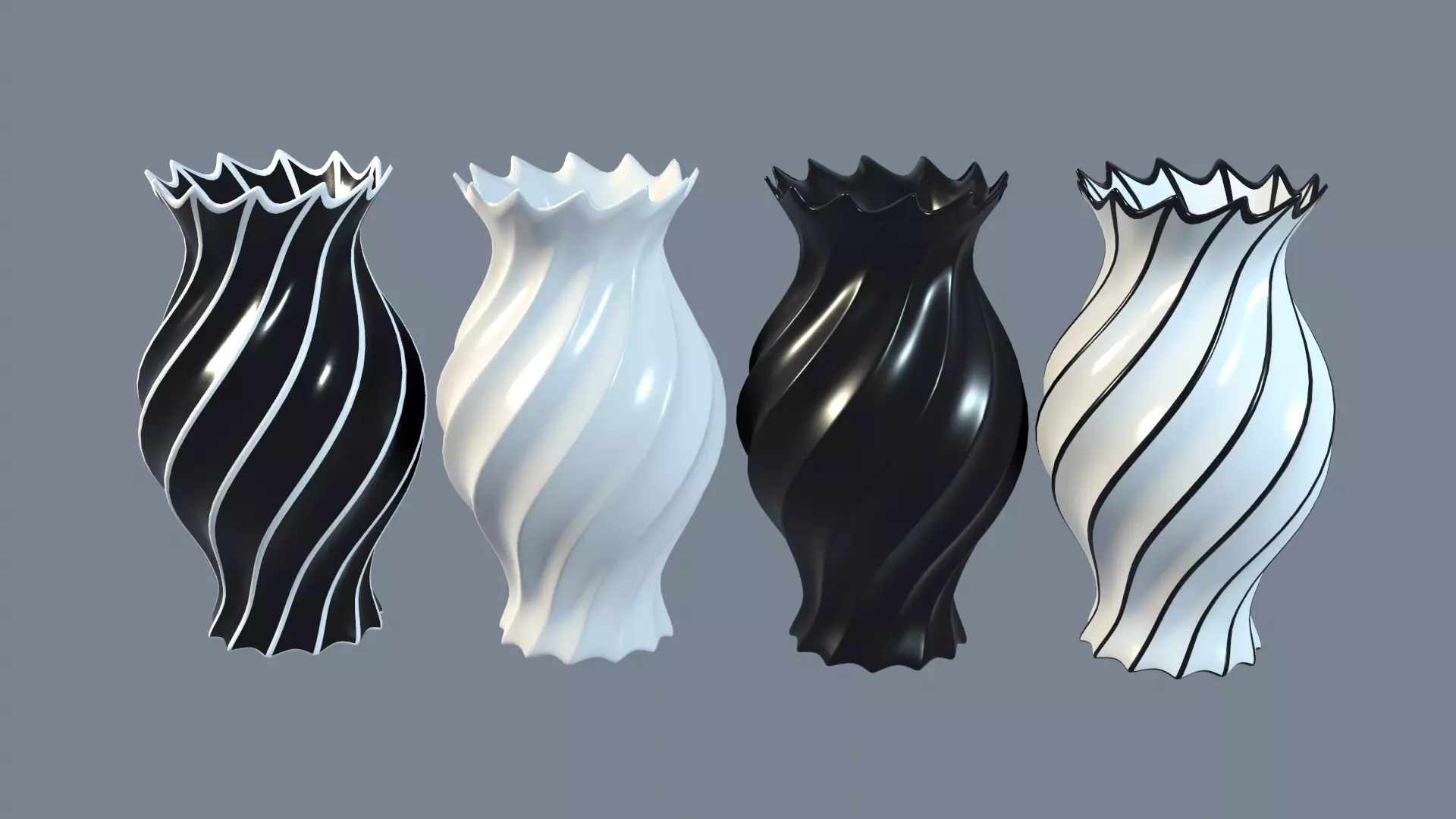 Vases porcelain black and white 3D Model Pack
