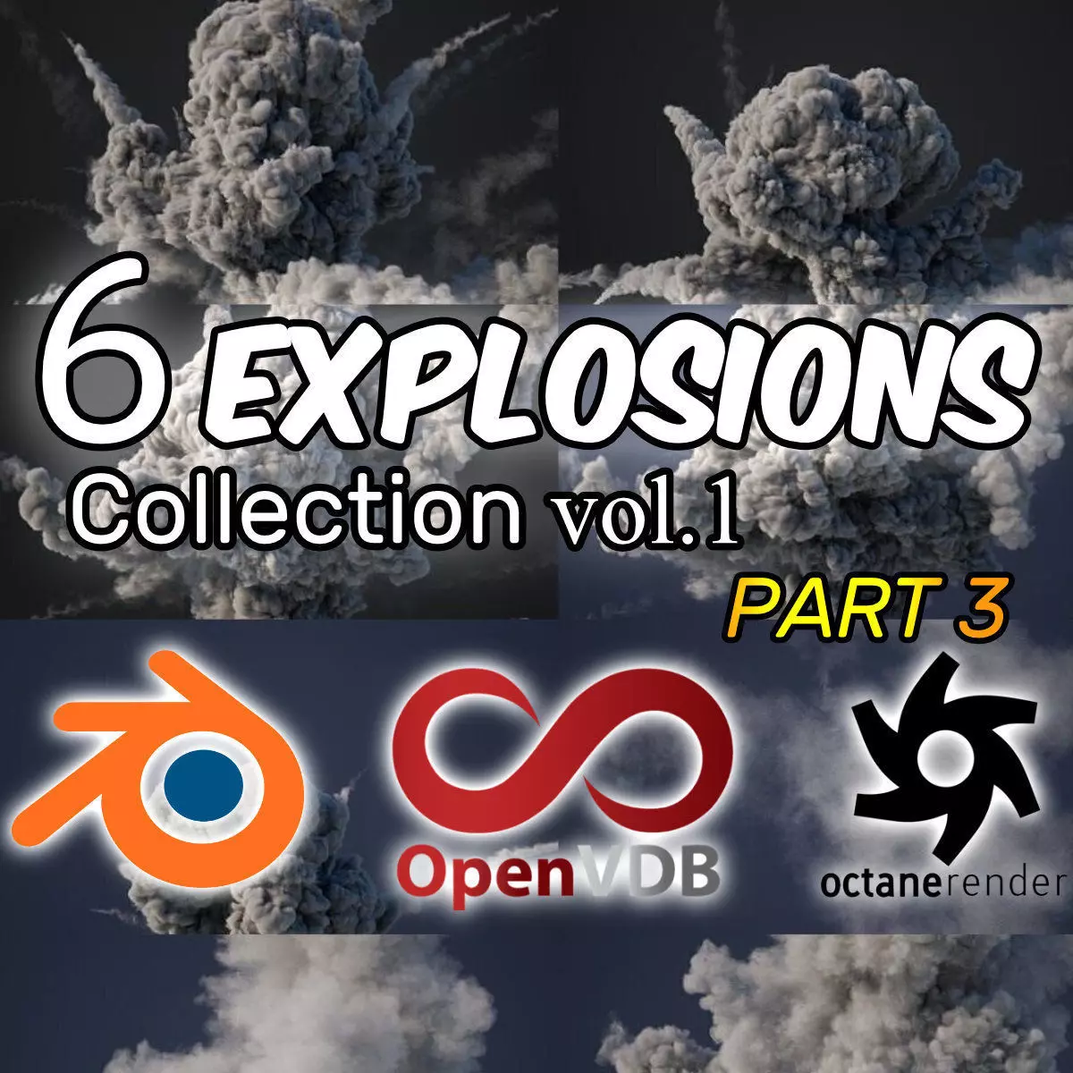 A Collection of 6 VDB Product of Animated ExplosionsNo simulation needed!, just import and layout into your scene!