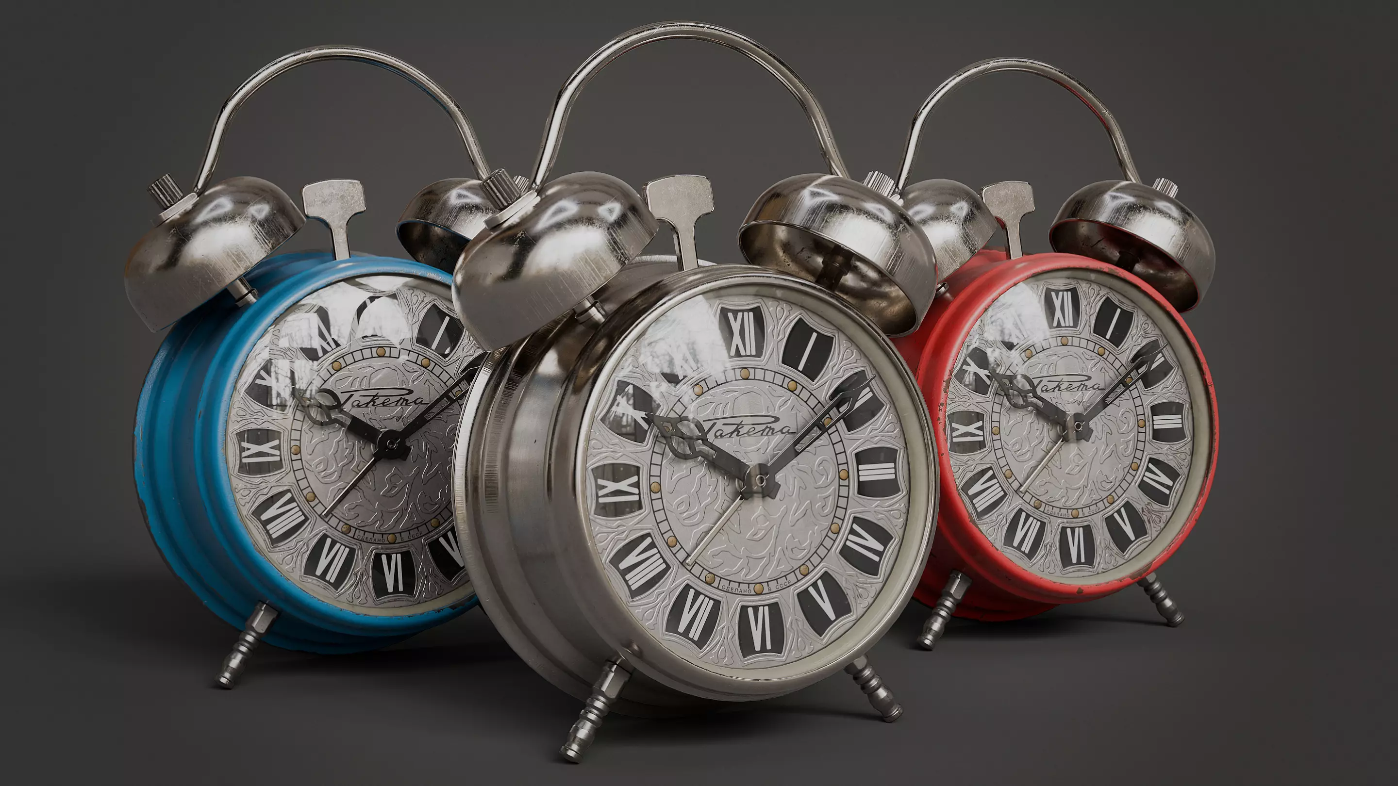 A vintage alarm clock in 3 different styles. Buy one and get 2 free with this bundle!