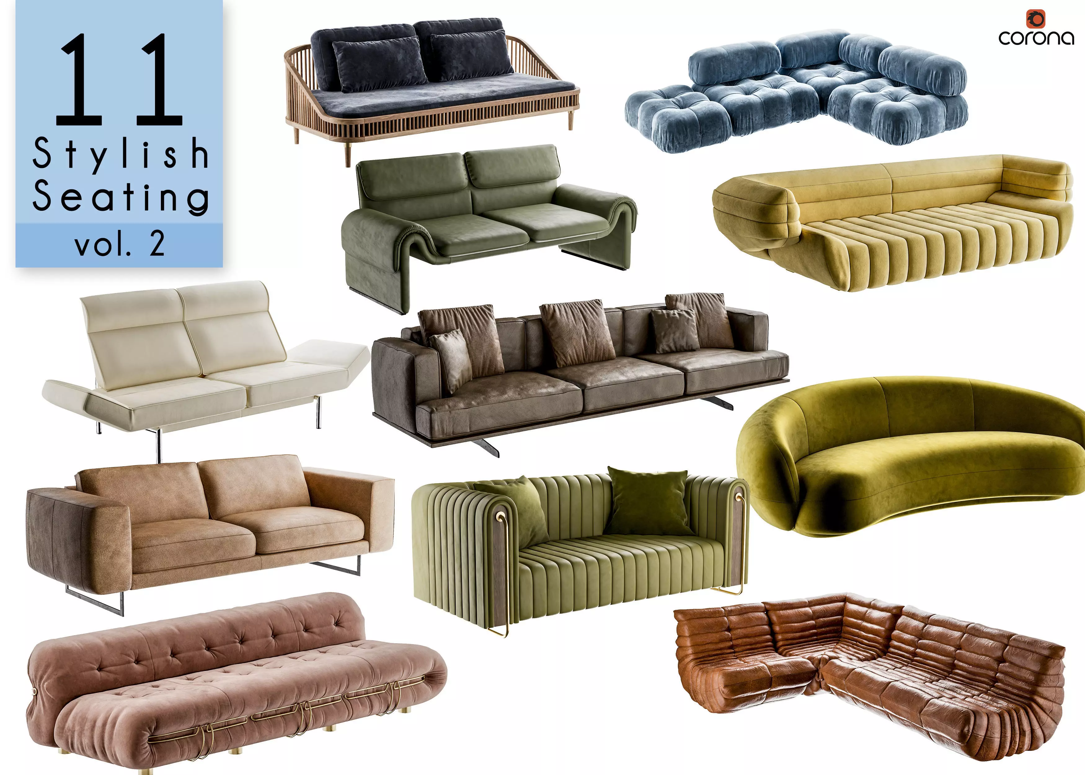 Collection of 11 stylish seating furniture (sofas) - Volume 2. You can look up all the details about each building by clicking on the links in the contents tab.