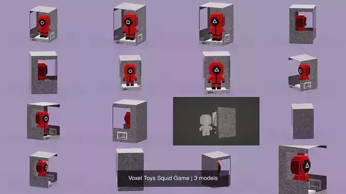 Voxel Toys Squid Game by GardenDictionary. Voxel 3D models created in MagicaVoxel Editor. Available Formats: .vox (MagicaVoxel)” .obj + mtl + PNG texture +.stl + .fbx + .blend + .dae Hope you like it! Please see other my models Please rate it if you buy. Enjoy!
