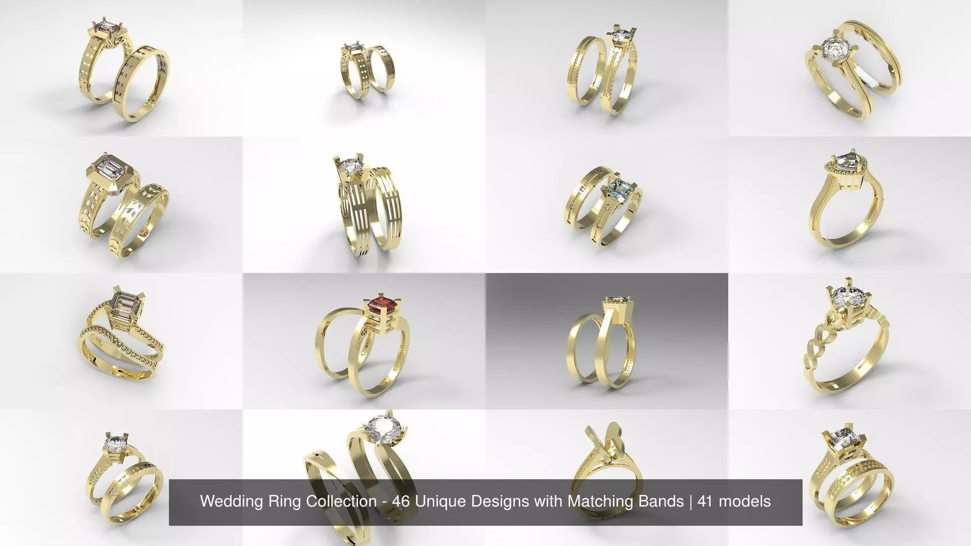 Explore this elegant and meticulously crafted collection of 3D wedding rings, perfect for jewelers, designers, and 3D enthusiasts. This collection features 46 unique wedding ring designs, each paired with a matching band, totaling 92 high-quality files. Each design combines timeless elegance with modern sophistication, ensuring that every piece stands out as a symbol of love and commitment.