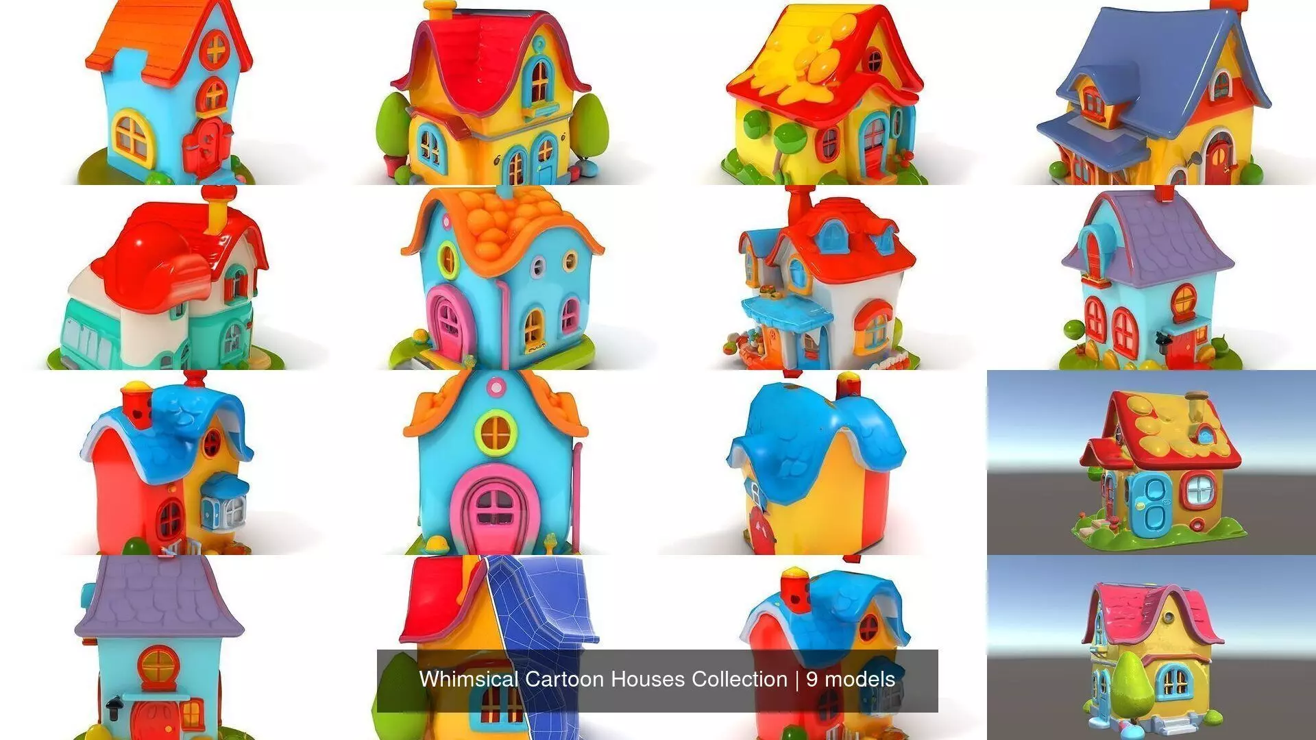 Discover a vibrant collection of 3D models featuring whimsical cartoon houses perfect for animations and games. Each model is crafted with intricate details, bringing to life colorful cottages and props ideal for any creative project. The collection offers houses with various levels of detail and eye-catching roofs, ensuring versatility in application and design. Whether it's a charming woodland cottage or a lively urban house, these models bring a touch of fantasy and fun to any digital environment.