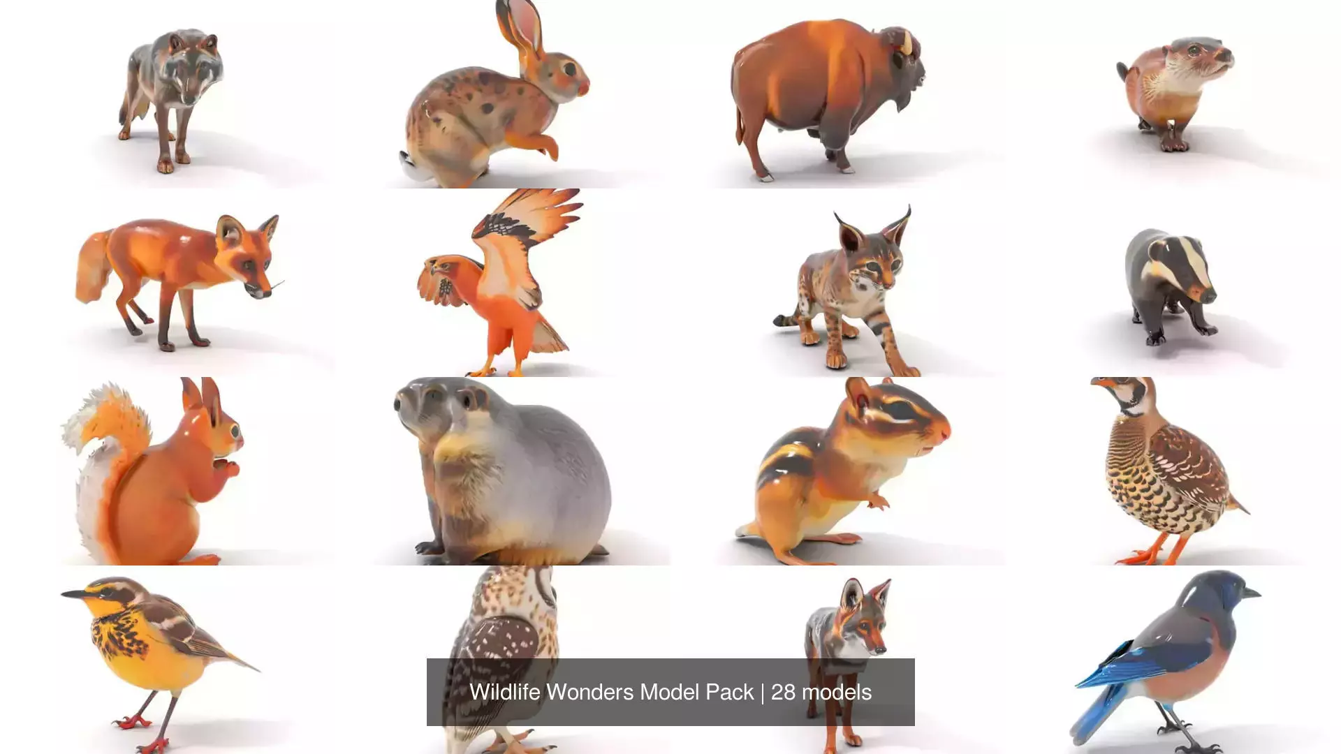 Discover the beauty and diversity of the animal kingdom with our 'Wildlife Wonders Model Pack'. This collection brings together intricately crafted 3D models of majestic creatures such as the golden eagle with its noble stature and shimmering bronze hues, the swift red fox with a glossy coat and cunning amber eyes, and the ferocious gray wolf, capturing its predatory essence. Experience the stately presence of the moose with its massive antlers, the vibrant colors of the elegant pheasant, and the clever antics of the playful river otter. Each model embodies the unique characteristics and behaviors of these splendid creatures, from the noble prairie dog and regal bald eagle, to the shy lynx and resilient wild boar. Perfect for digital animation, educational content, or artistic projects, 'Wildlife Wonders Model Pack' showcases the splendor and intricacy of nature's creatures, inviting exploration and appreciation.
