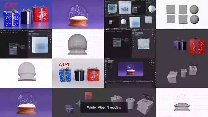This Winter Gift Box & Snow Globe Collection is a high-quality Blender asset pack designed for winter-themed scenes, product renders, and stylized environments.