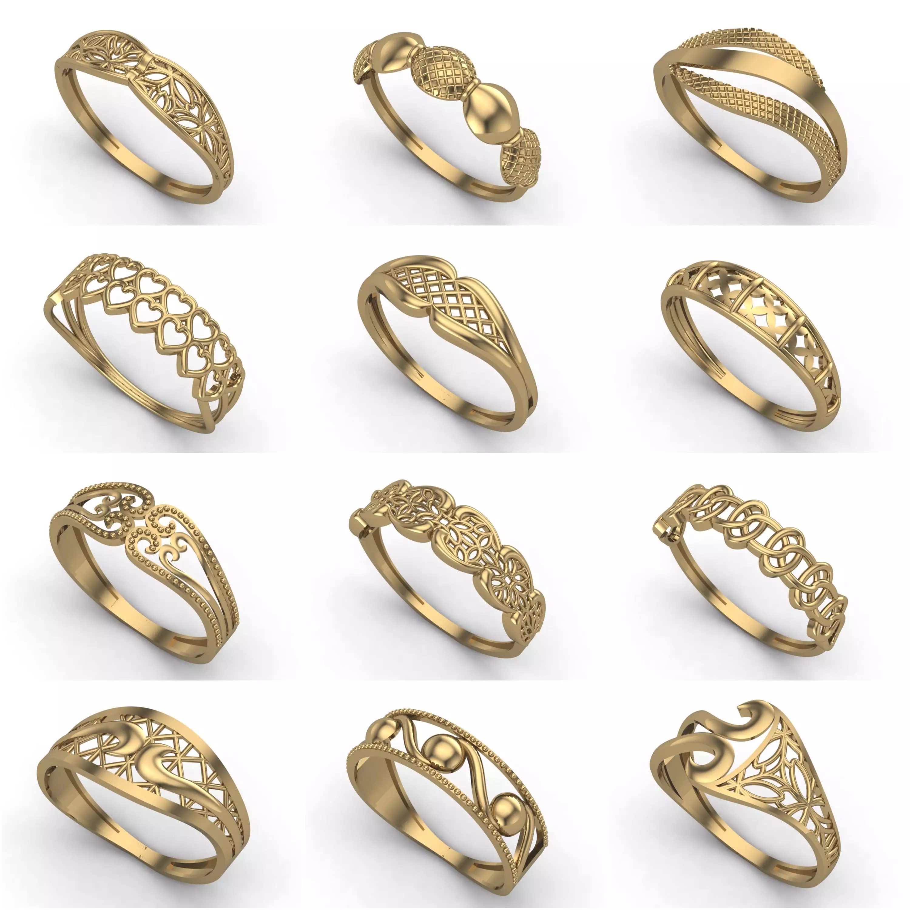 100 Files - Women Ring Womens Rings Plain Models STL 3DM 3D Model Pack
