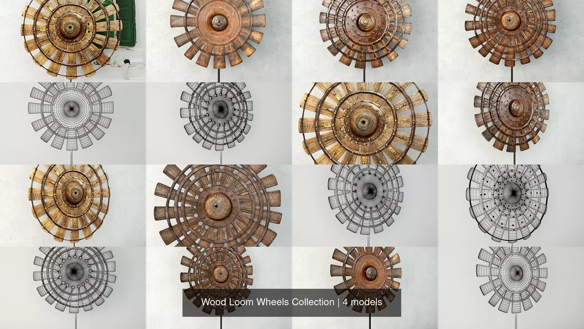 Wood Loom Wheels Collection 3D Model Pack