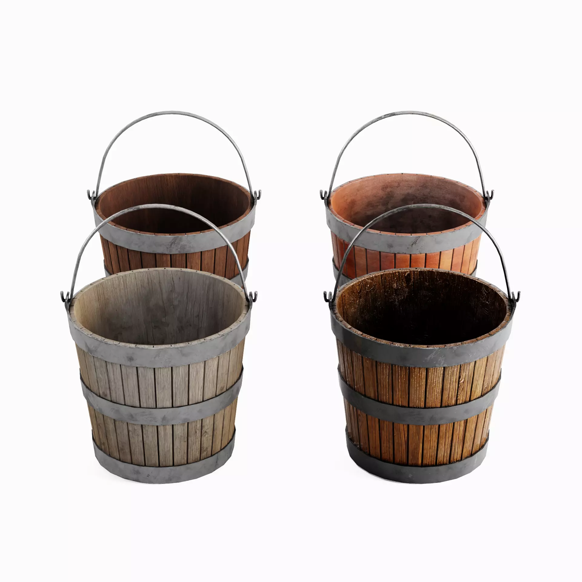 Wooden Bucket Pack A ( Collection ) – Low Poly, Game Ready Asset.