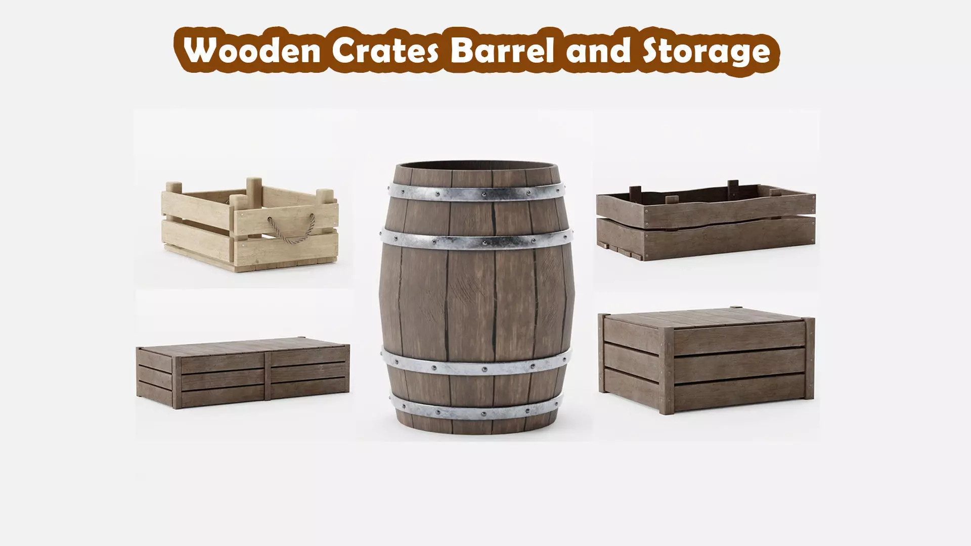 Wooden Crates Barrel and Storage 3D Model Pack