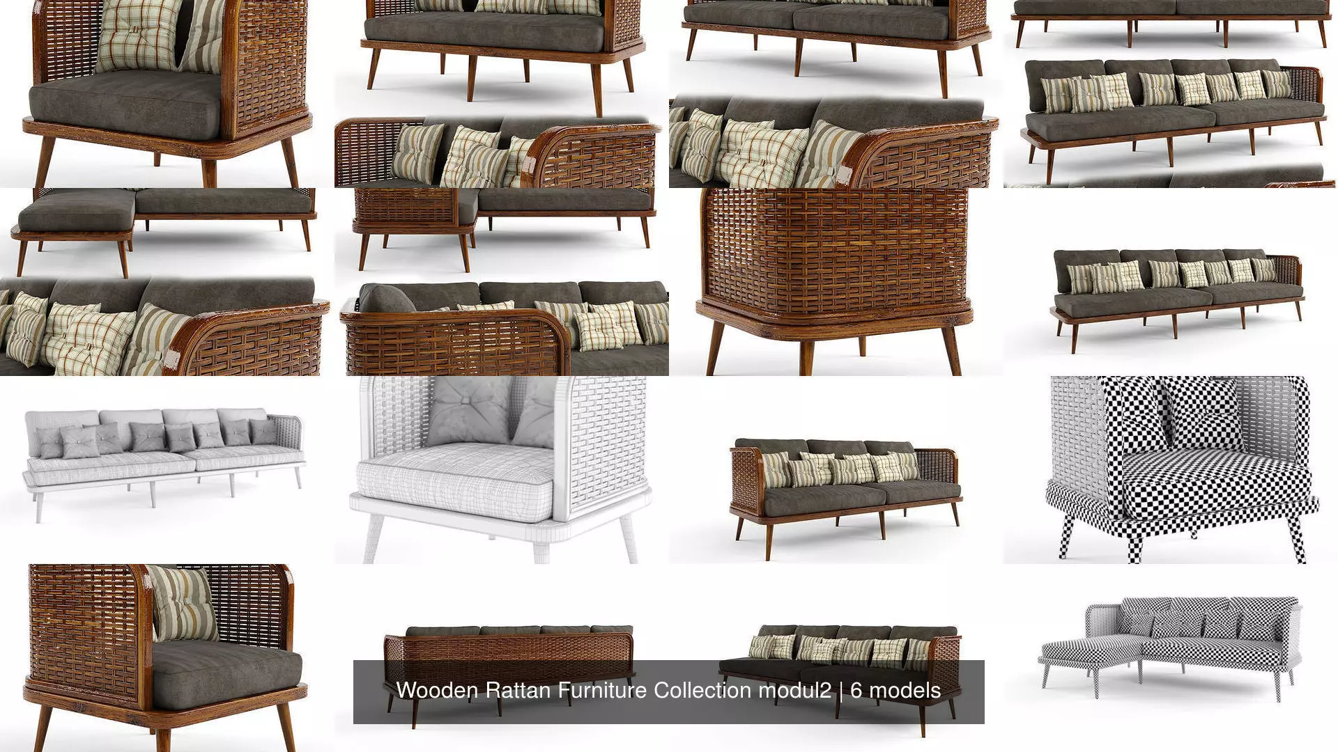 Wooden Rattan Furniture Collection modul2 3D Model Pack