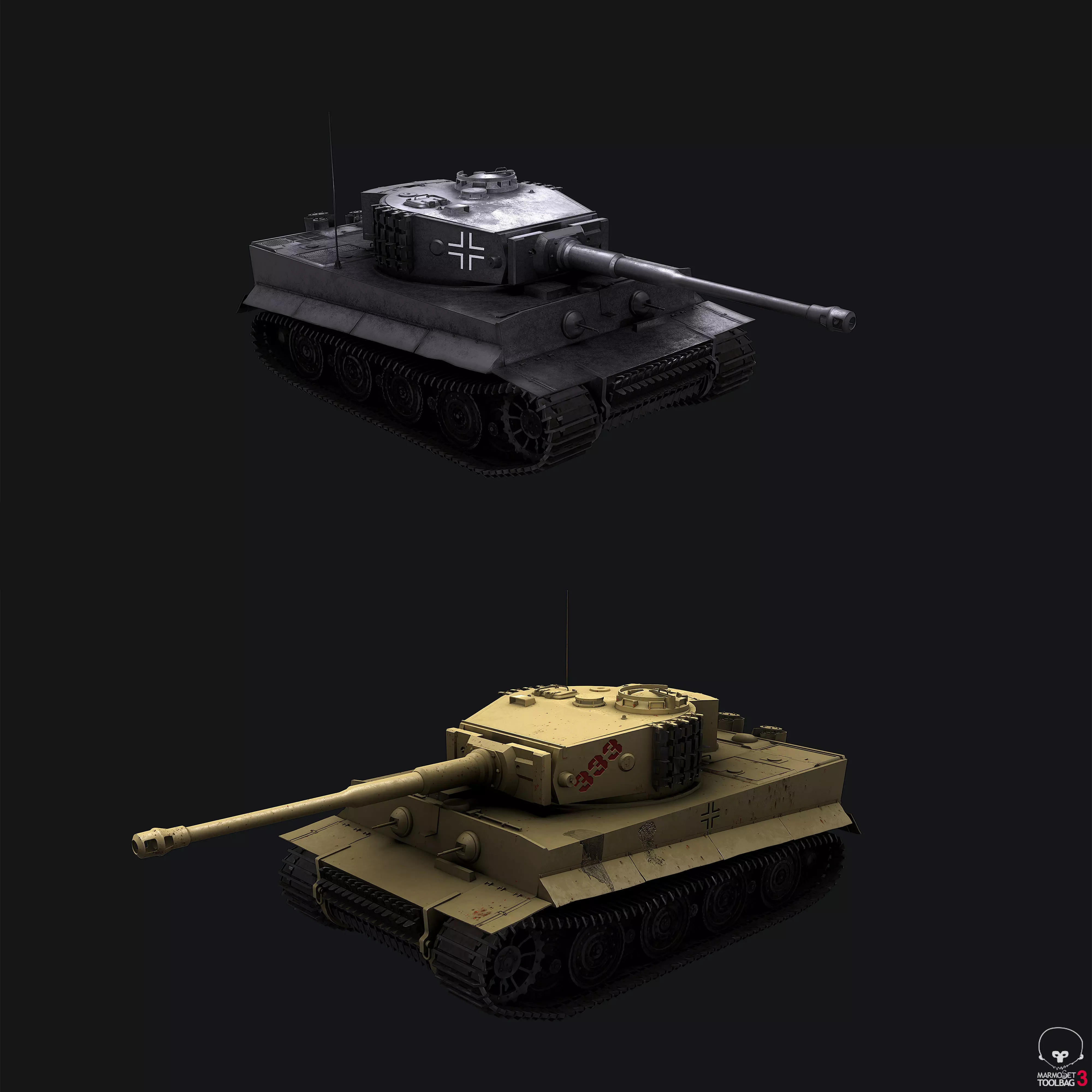 WW2 Tiger I German Tank Pack PBR Game-Ready.