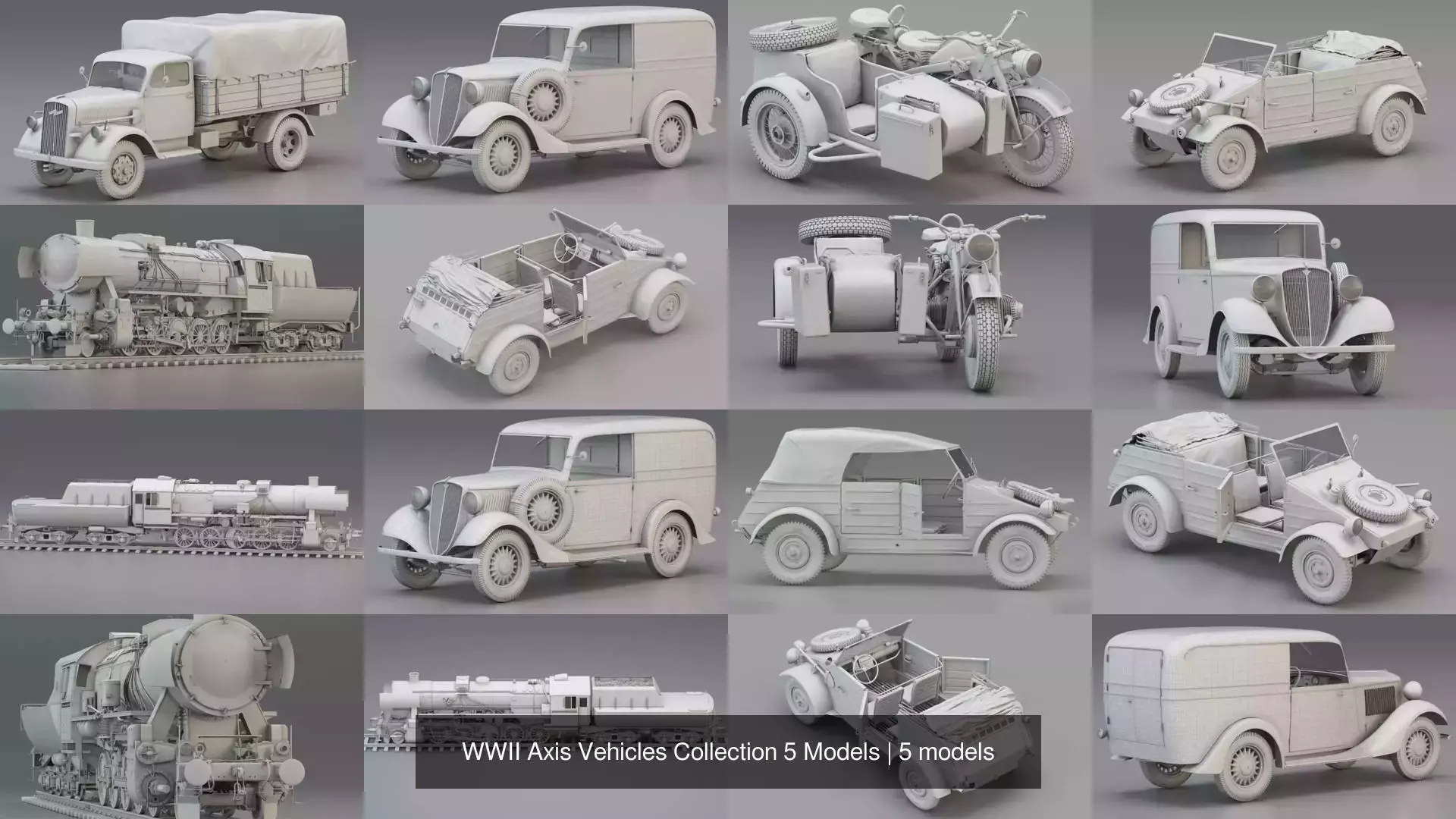 Each model is historically accurate and built as a low poly mesh with Turbosmooth modifier, allowing you to easily control mesh density. All assets are properly separated, named and optimized for professional workflows.