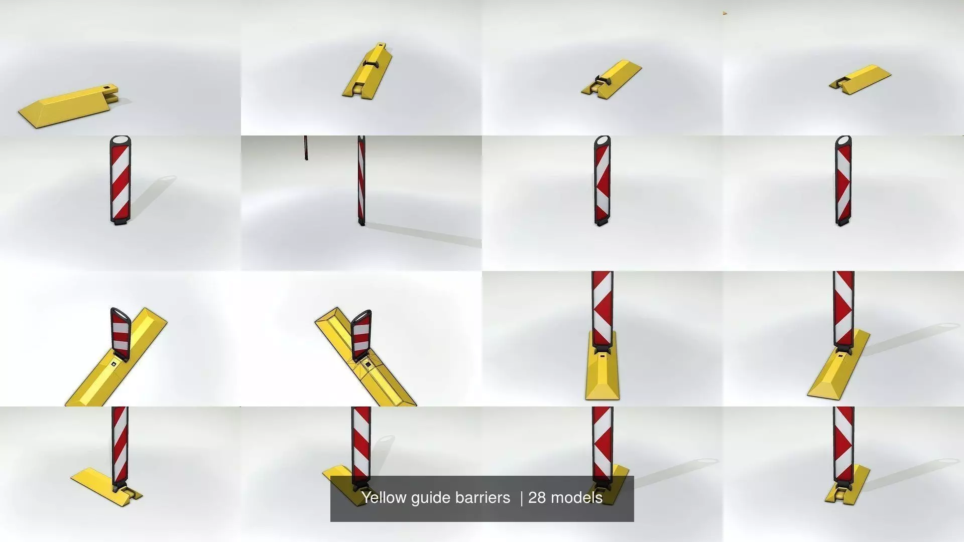 collection of 28 yellow guide barriers for roads and highways.