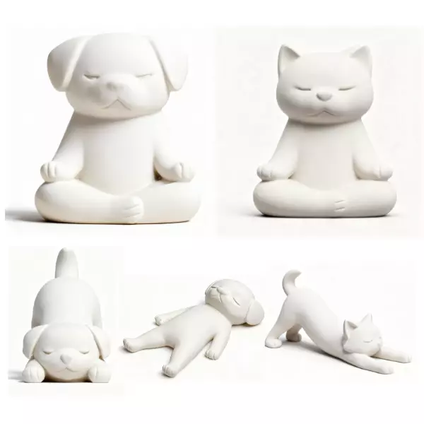 Α bundled set of Yoga Dog and Yoga Cat mini pose collections, designed as clean, solid 3D models for decorative and collectible use.