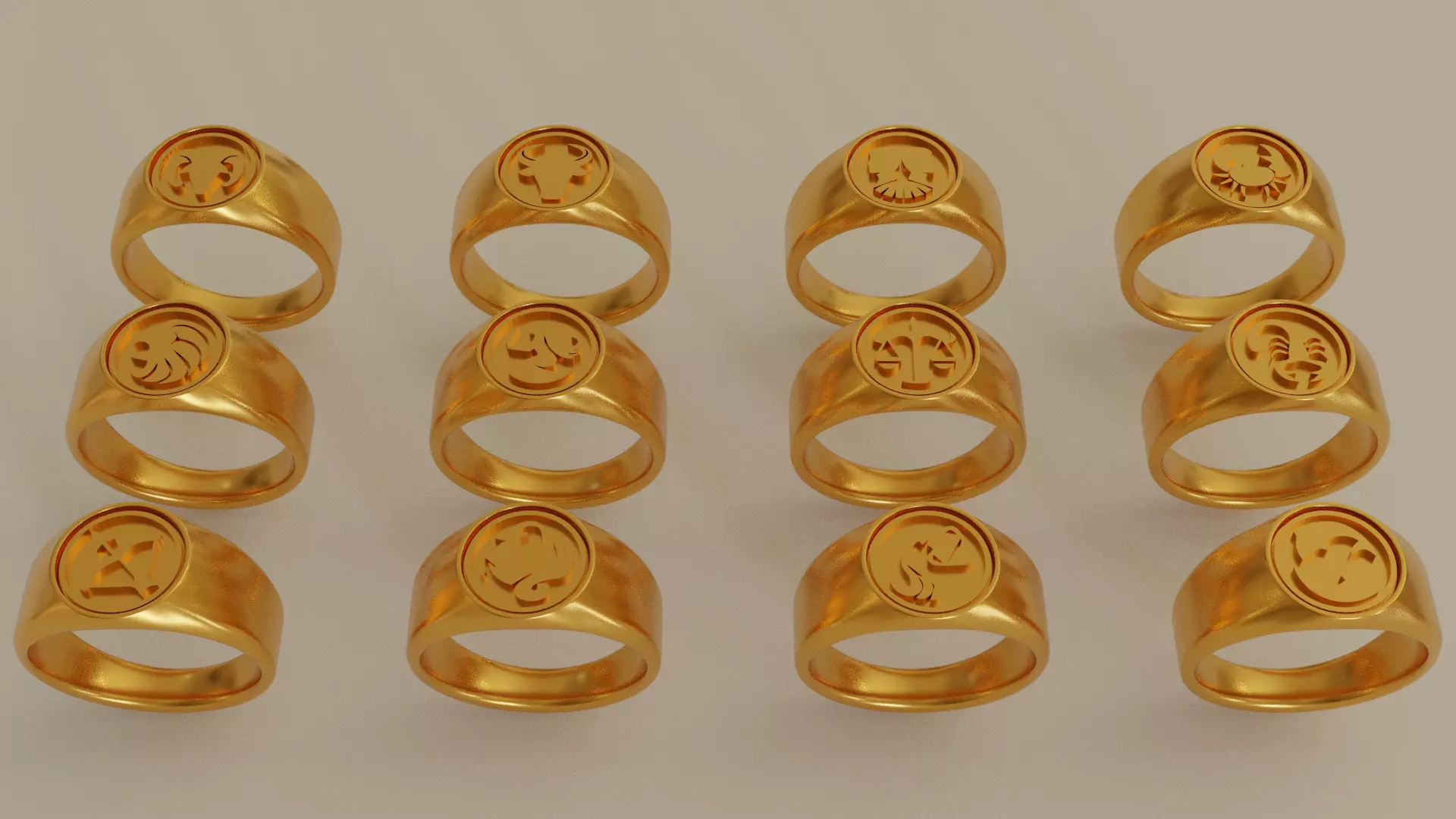 Zodiac Sign Rings Collection3D models for CNC machines and printingInner Diameter 17 mmApproximate metal weight of each ring: gold 14k – 8,2 grams; gold 18k – 9,7 grams; Silver – 7 grams.Feel free to reach out to me with any questions and have a great day.