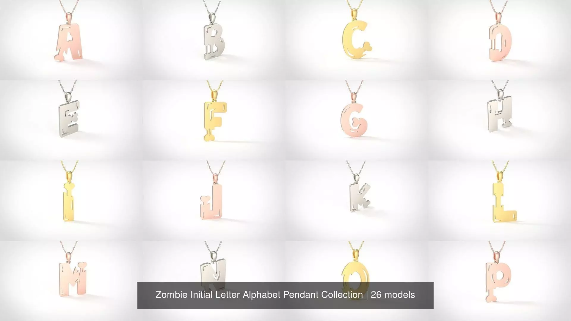Zombie Initial Letter Alphabet Pendant Collection 3D Model Pack