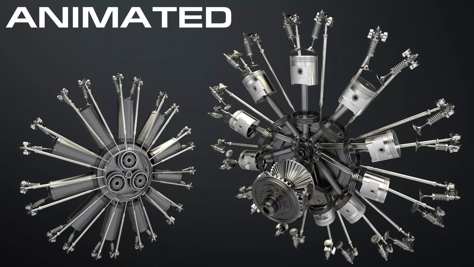 ==>> Radial motor, Eleven cylinder motor, Air Craft Engine, ANIMATED!