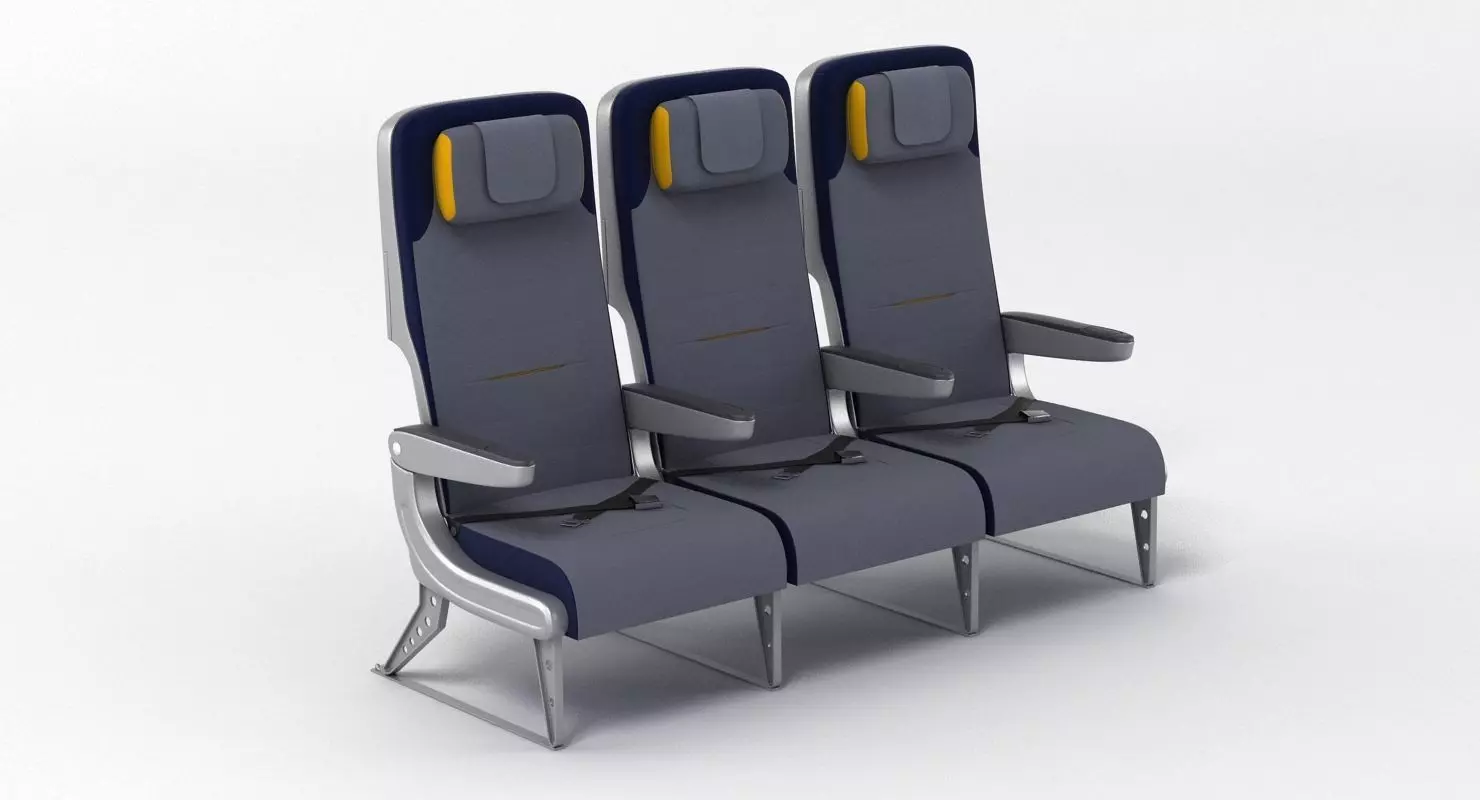 A detailed 3D model of economy commercial airliner seats;