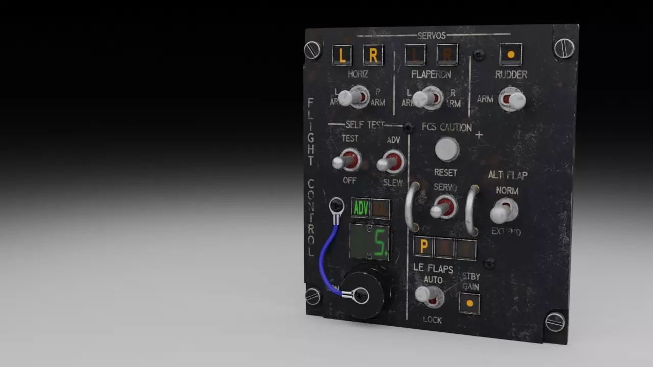 With the FLIGHT CONTROL PANEL (FCP) you can use the functions of the flight controls system (FLCS) or flight control computer (FLCC). The Side Stick Controller is also part of this system. If the FLCS is damaged, you can manually access the flaps by using this panel.