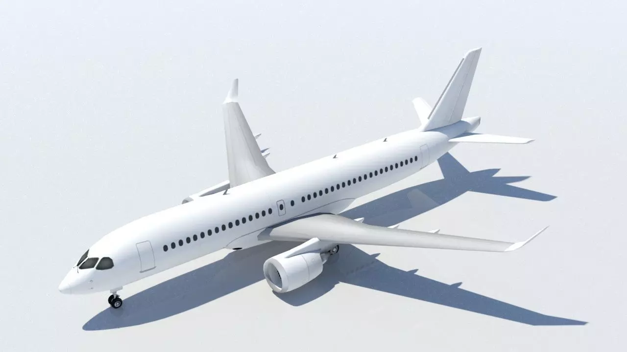 High-quality low poly twin-engine narrow-body jet designed for airport scenery, AI traffic, and game environments.