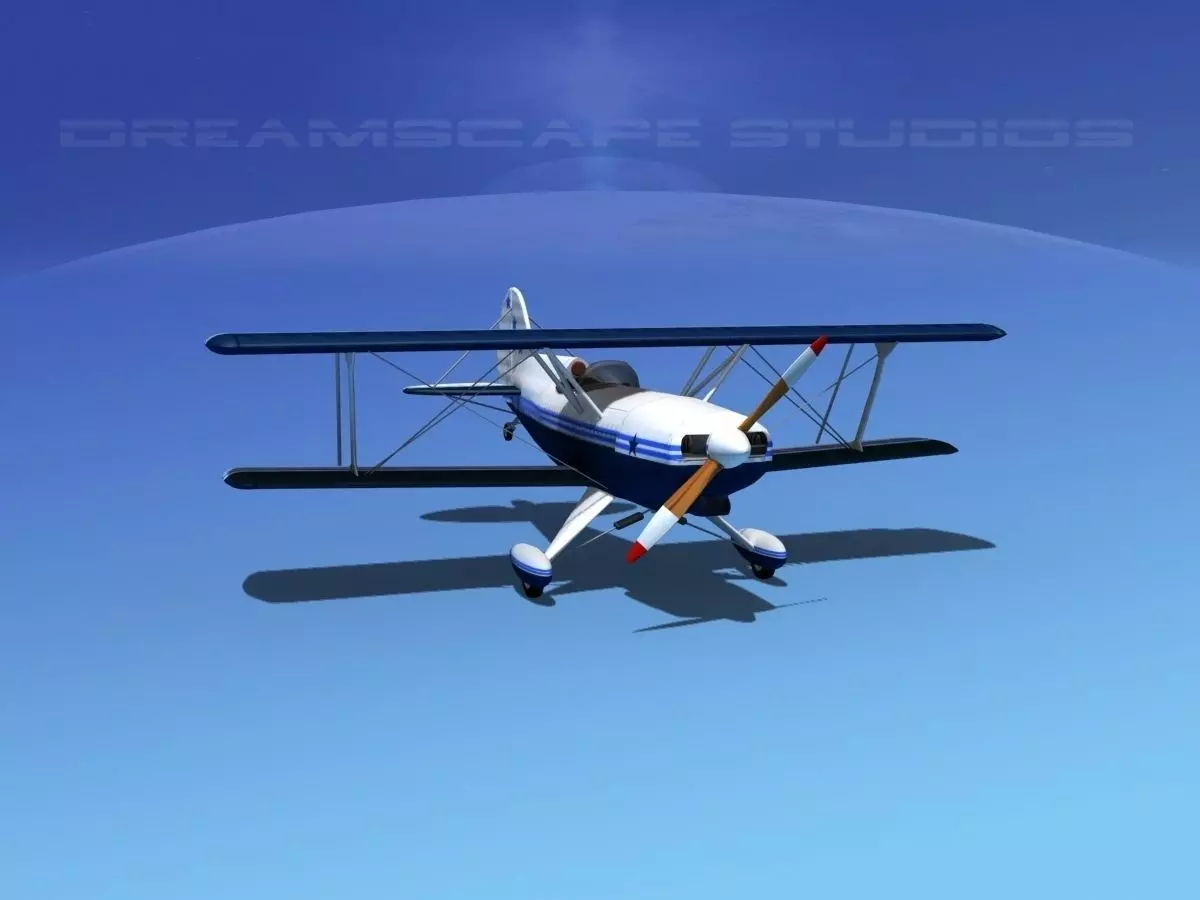 This model is built near to scale, highly detailed and includes many great features. First the model is fully textured and includes textures for the fabric covering, sewing and for leading edge smooth areas where plywood leading edges are used. The cockpits include complete instrumentation, materials for the gauges, switches, controls and knobs. Rudder peddles are also included. Structural flying wiring is also included on the wings, tail and stabilizer. The ailerons on (bottom and top wings) elevators, rudder, and the propeller are animatable. Pull the cowling off to reveal a nearly complete engine compartment with a 4 cylinder opposed inline, air intakes, starter, flywheel and mounts. Cooling plates are also modeled. This model comes with 12 different formats. This model is available in 18 different paint schemes. The Acro Sport is a single-seat aerobatic sportsplane designed by US aviation enthusiast Paul Poberezny in the early 1970s for homebuilding. Plans are marketed by Acro Sport Inc.The Acro Sport is a short-span biplane of conventional taildragger configuration, typically built with an open cockpit and spatted main undercarriage. Its structure is fabric-covered, steel tube fuselage and tail group, with wood wing structure.