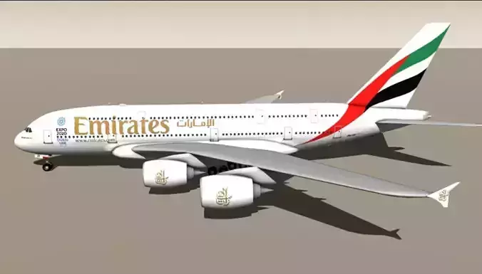 Ideal for architects creating airport terminals, urban planners developing transportation hubs, game developers building flight simulators, or 3D artists working on aviation-themed projects. This commercial aircraft model delivers exceptional realism with authentic Emirates color scheme, detailed fuselage, four engine configuration, and proper wing geometry.