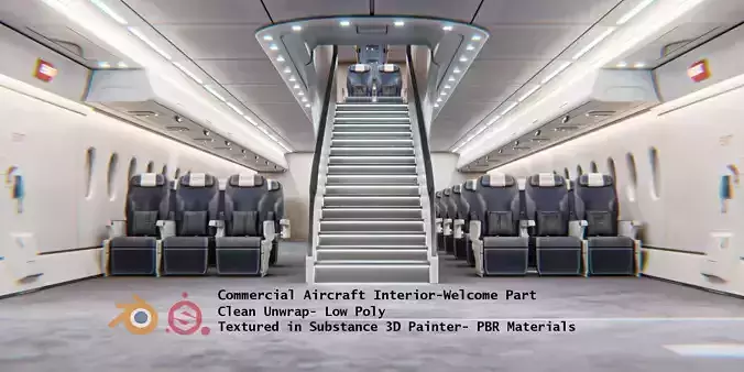 This premium 3D model recreates the welcoming section of the Airbus A380 cabin with exceptional attention to detail. Featuring a central staircase to the upper deck, premium seating, and authentic cabin elements, it delivers cinematic realism while remaining optimized for real-time use.