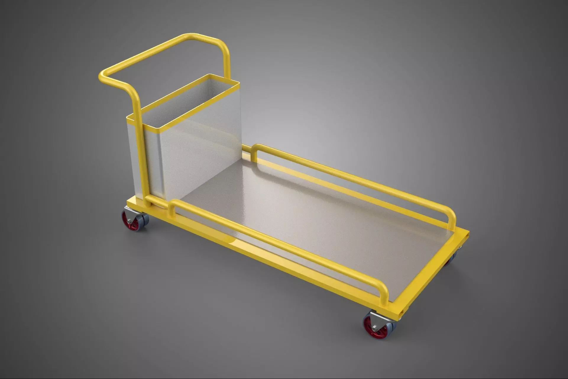 This equipment is characterized by its open, low-profile loading surface, defining it as a flatbed utility cart. Constructed typically from robust, corrosion-resistant materials such as high-tensile steel or heavy-duty aluminum alloys, the chassis is engineered for optimal durability under heavy and continuous operational stress. The flat deck often features non-slip surfaces, protective edge bumpers, and drainage mechanisms.