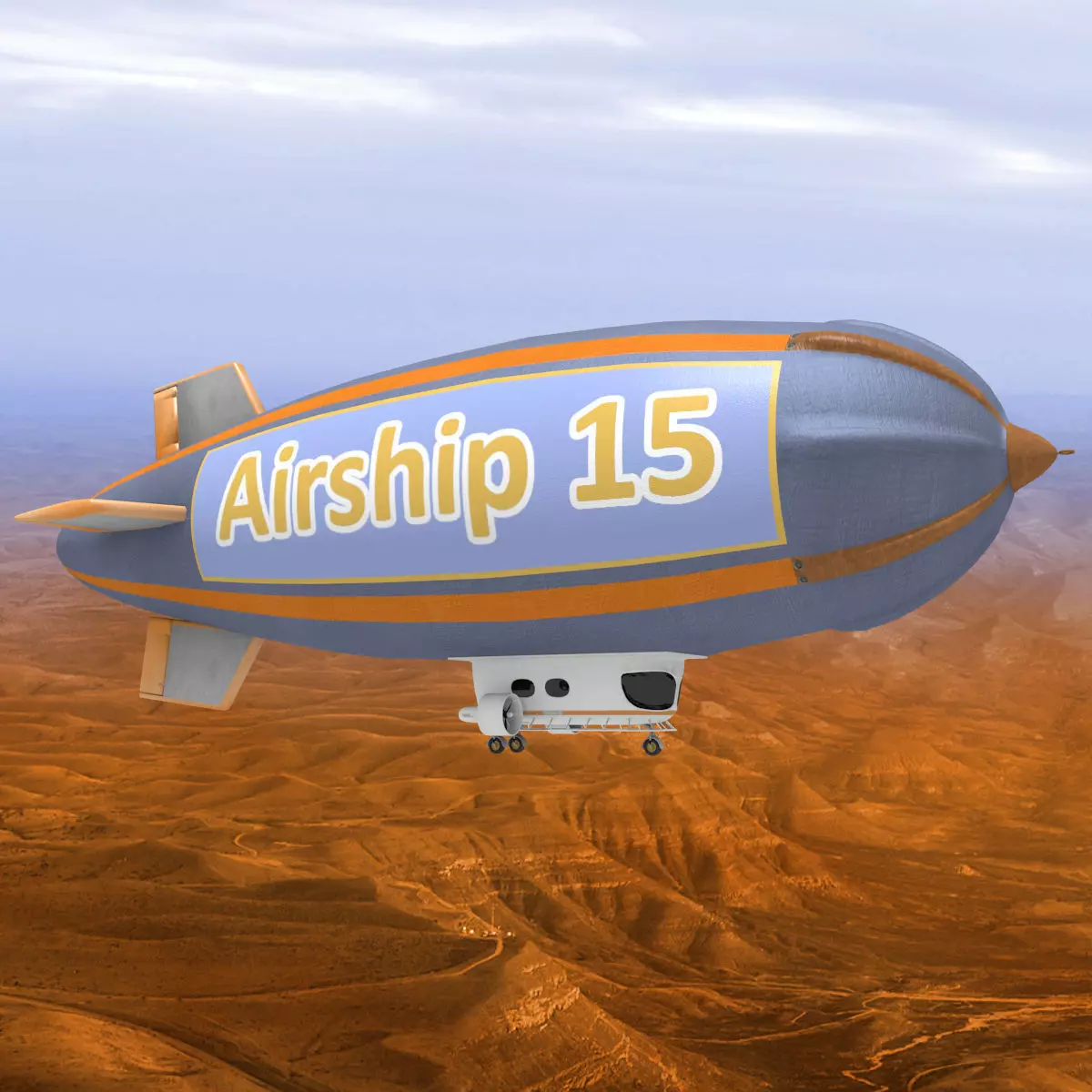 3D model of a dirigible modelled in Blender v2.74. The model is completed of materials and textures.The airship has two engines with blades and is landing on three undercarriages.On the balloon there is a customizable logo.The inner of the gondola (such as the cockpit and the seats for passengers) is not modelled.You can find the UV Layout in the ZIP - see folder 'UV Layout'.