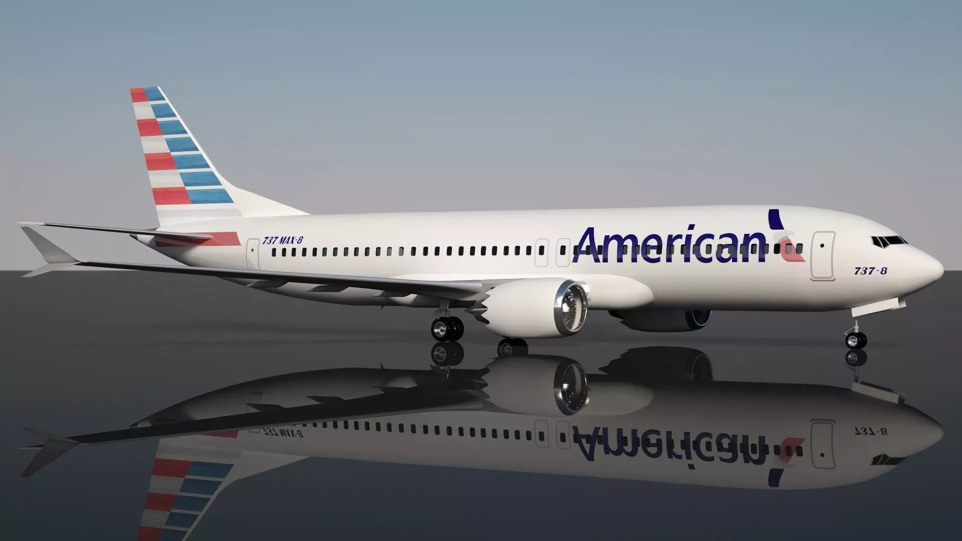 American Airlines 737 MAX - 8CAD + MAX + V-RAYScaled realistic modelingAll texture included.Uv mapped.