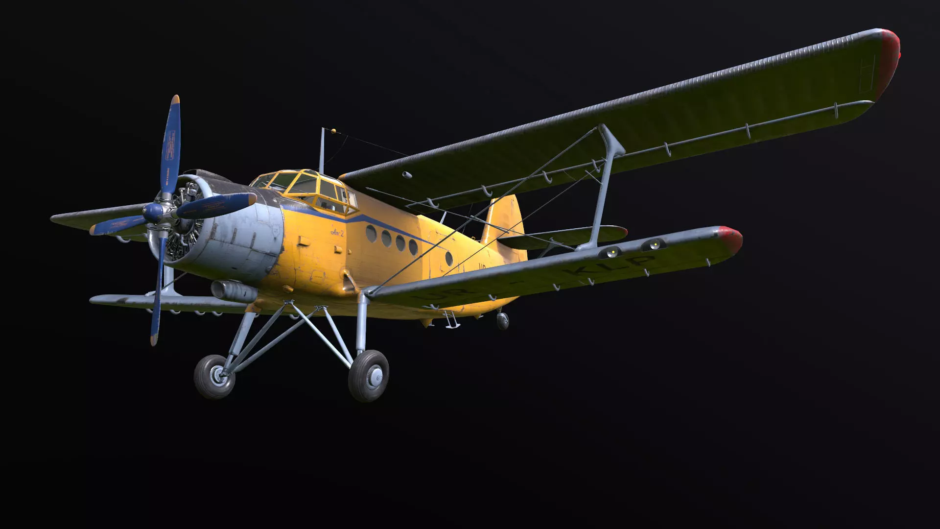 An-2 3D PBR 3D model old russian biplane flying in sky Low-poly 3D model